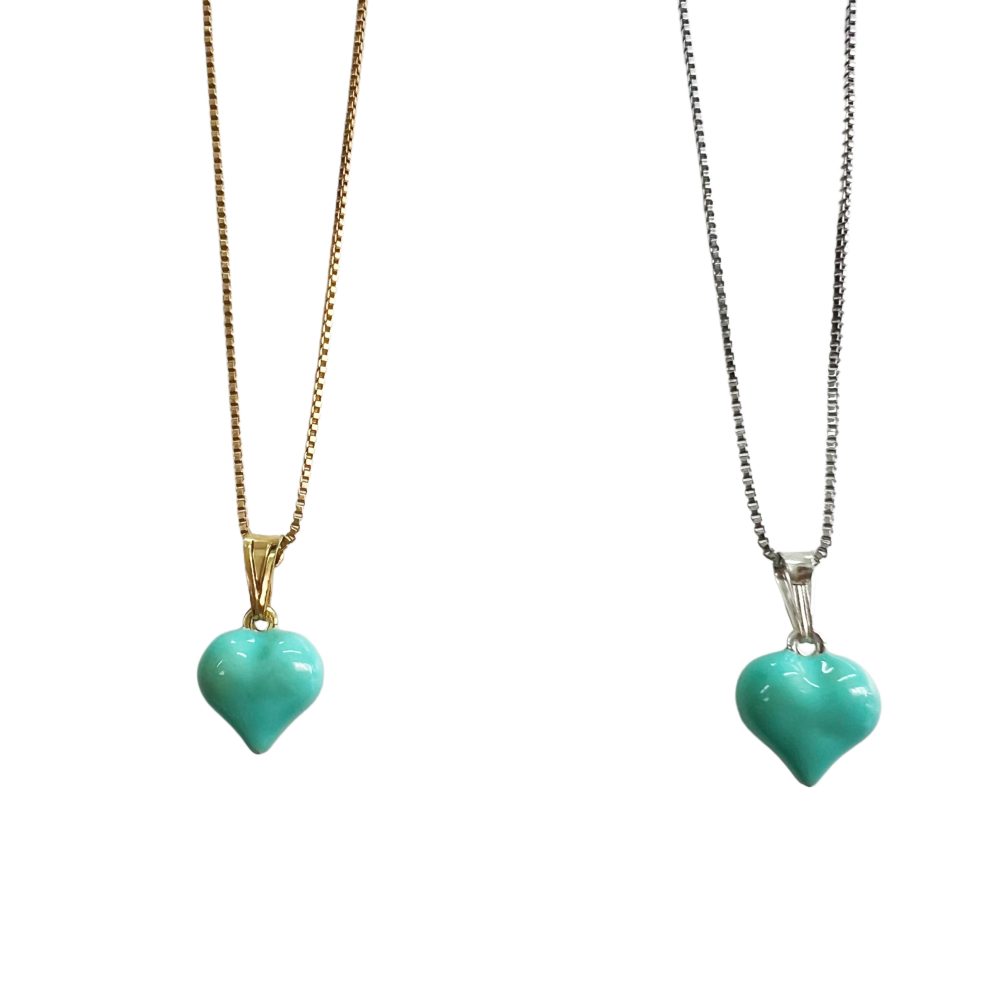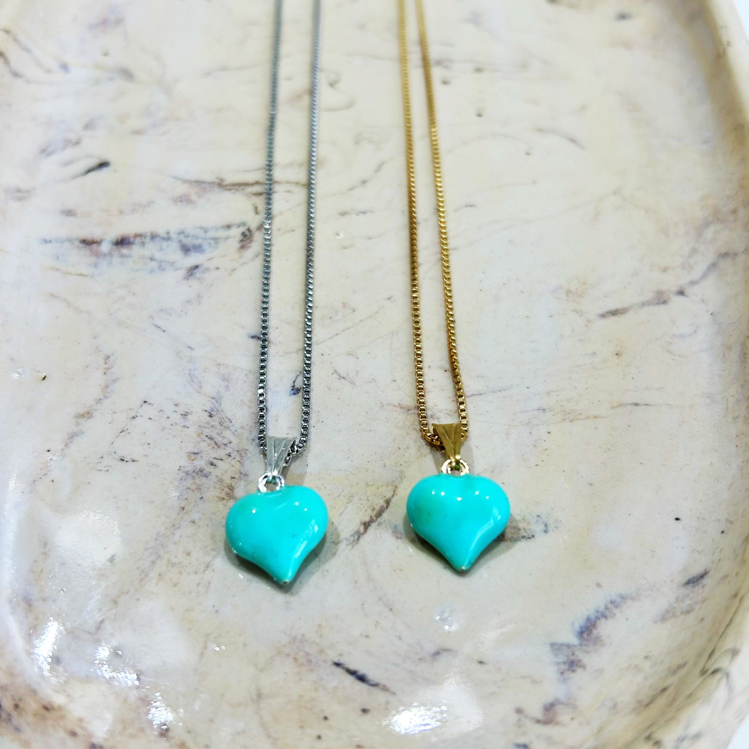 כסף – שרשרת בציפוי רודיום עמיד ואיכותי עם תליון לב מכסף אמיתי ואמייל טורקיז.