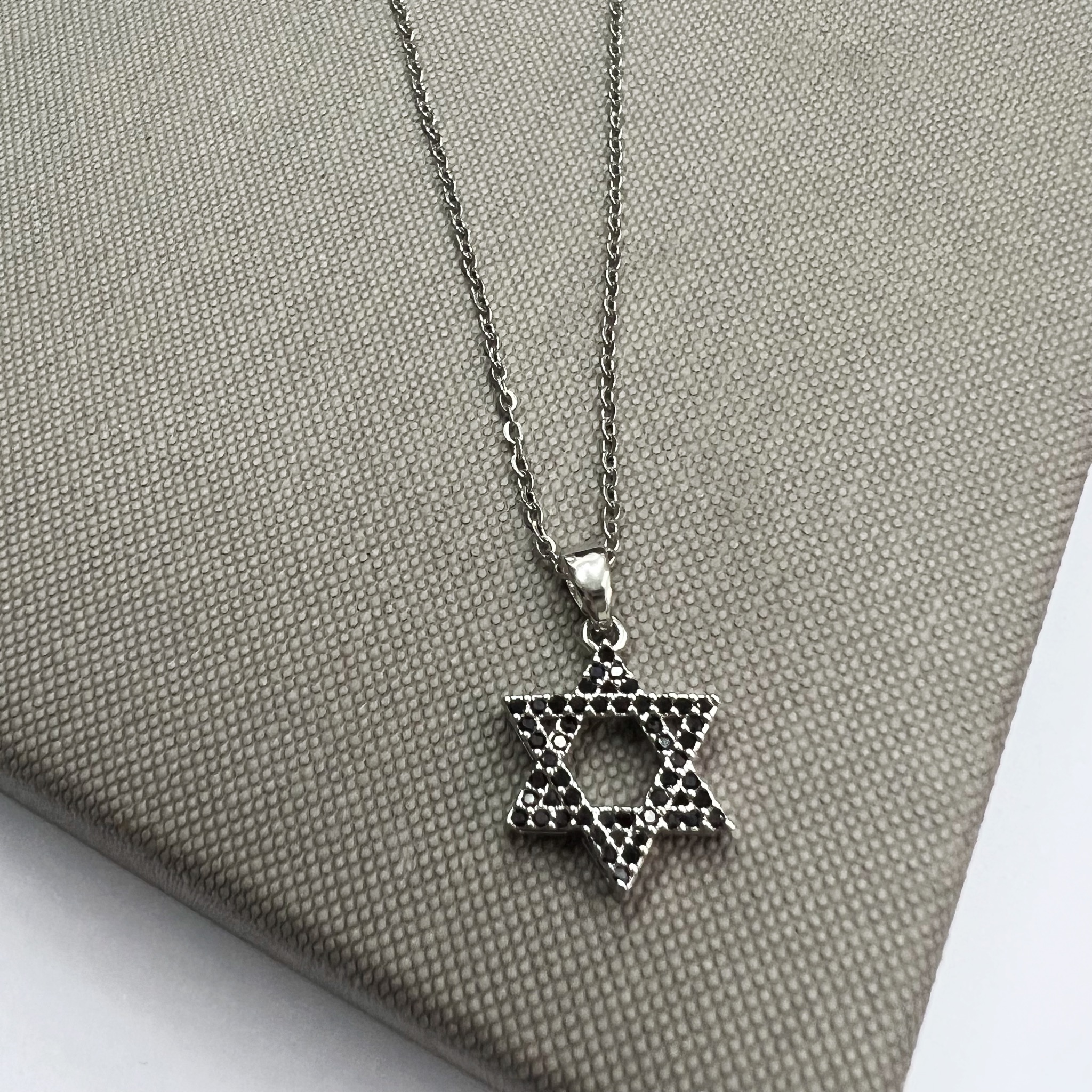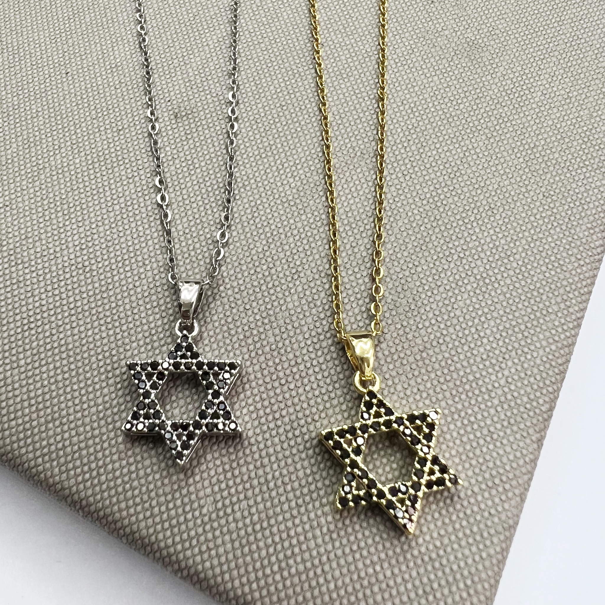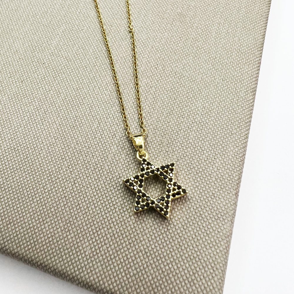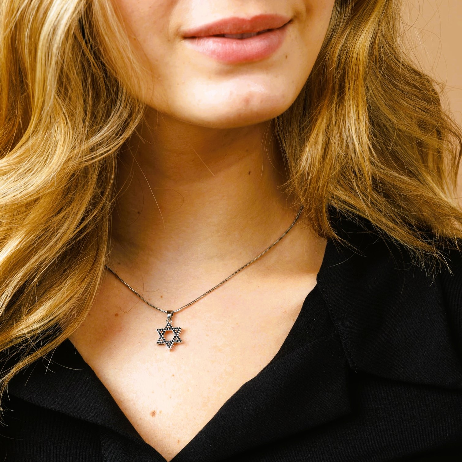 שרשרת עדינה עם תליון מגן דוד מרהיב משובץ באבני קריסטל שחורות משגעות.