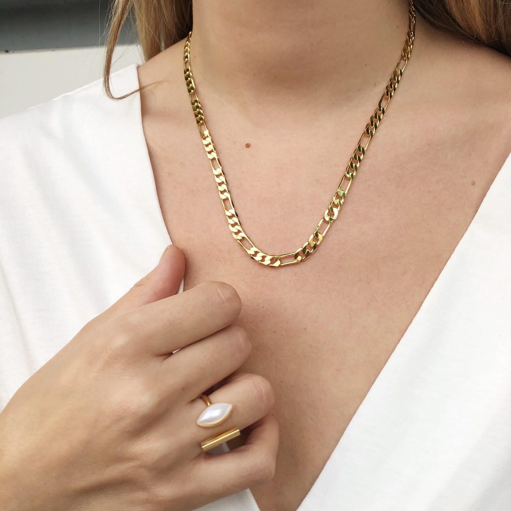 שרשרת חוליות גורמט שטוחות מדהימות בציפוי מוזהב 24 קראט או בציפוי כסוף.