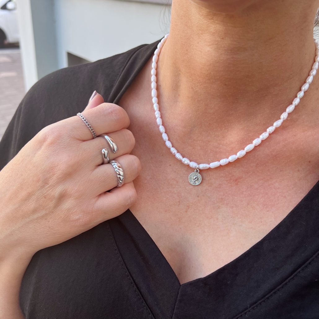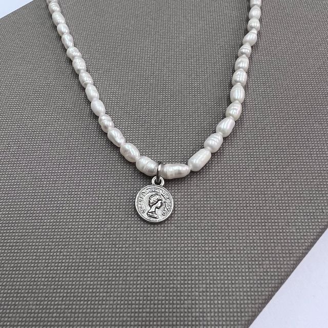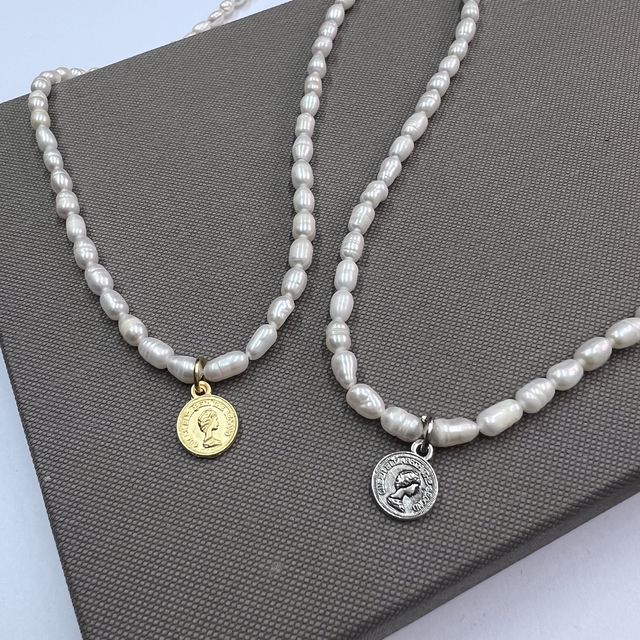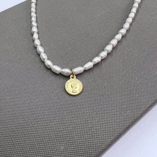 שרשרת פנינים משגעת, עדינה וקצרה עם תליון מטבע מהפנט