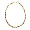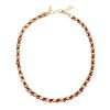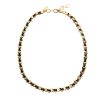 שרשרת חוליות בציפוי זהב 24 קראט בגוון מט עליה מלופף חוט שעווה צבעוני ויוצר טקסטורה מיוחדת.