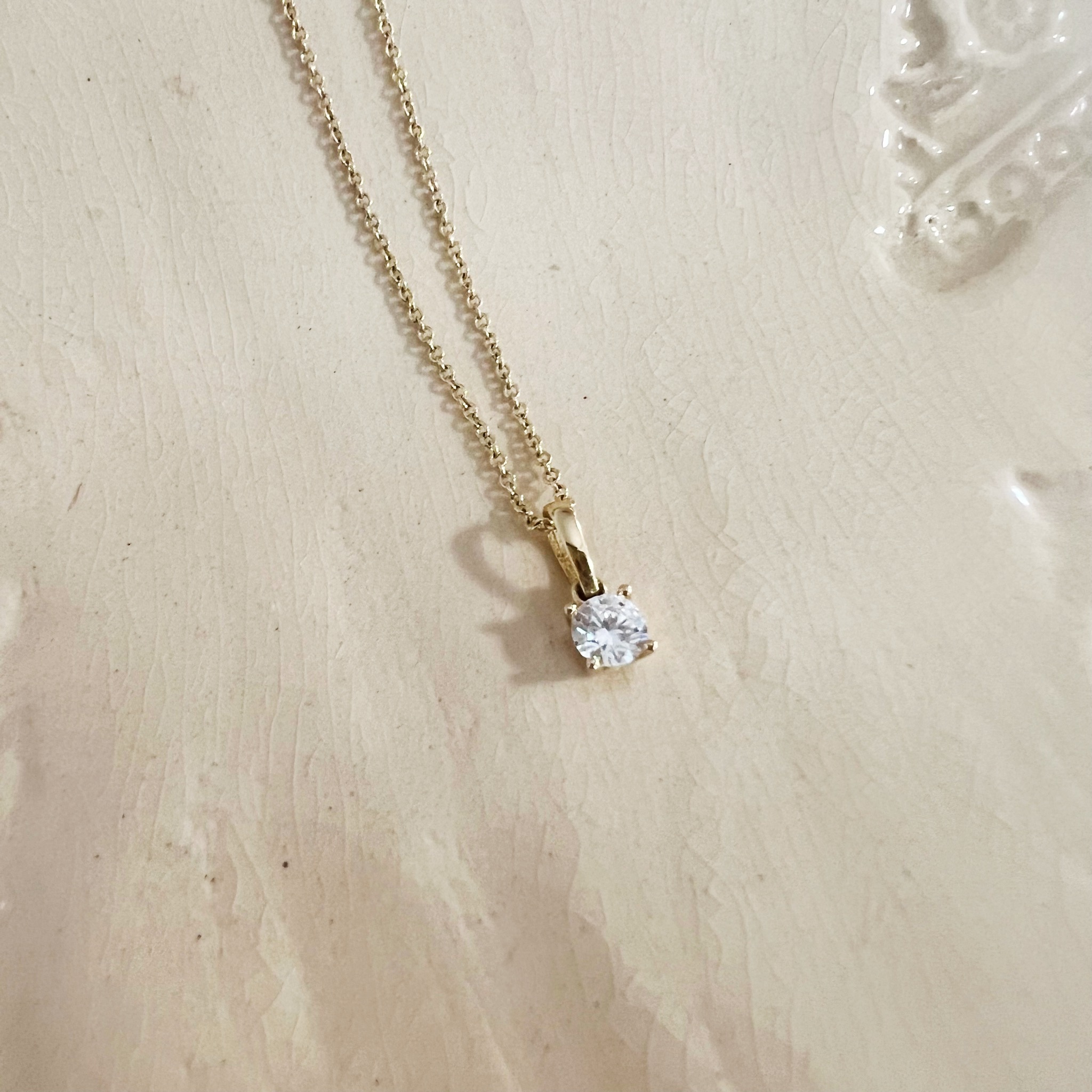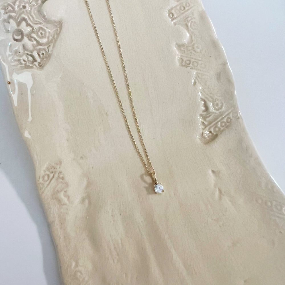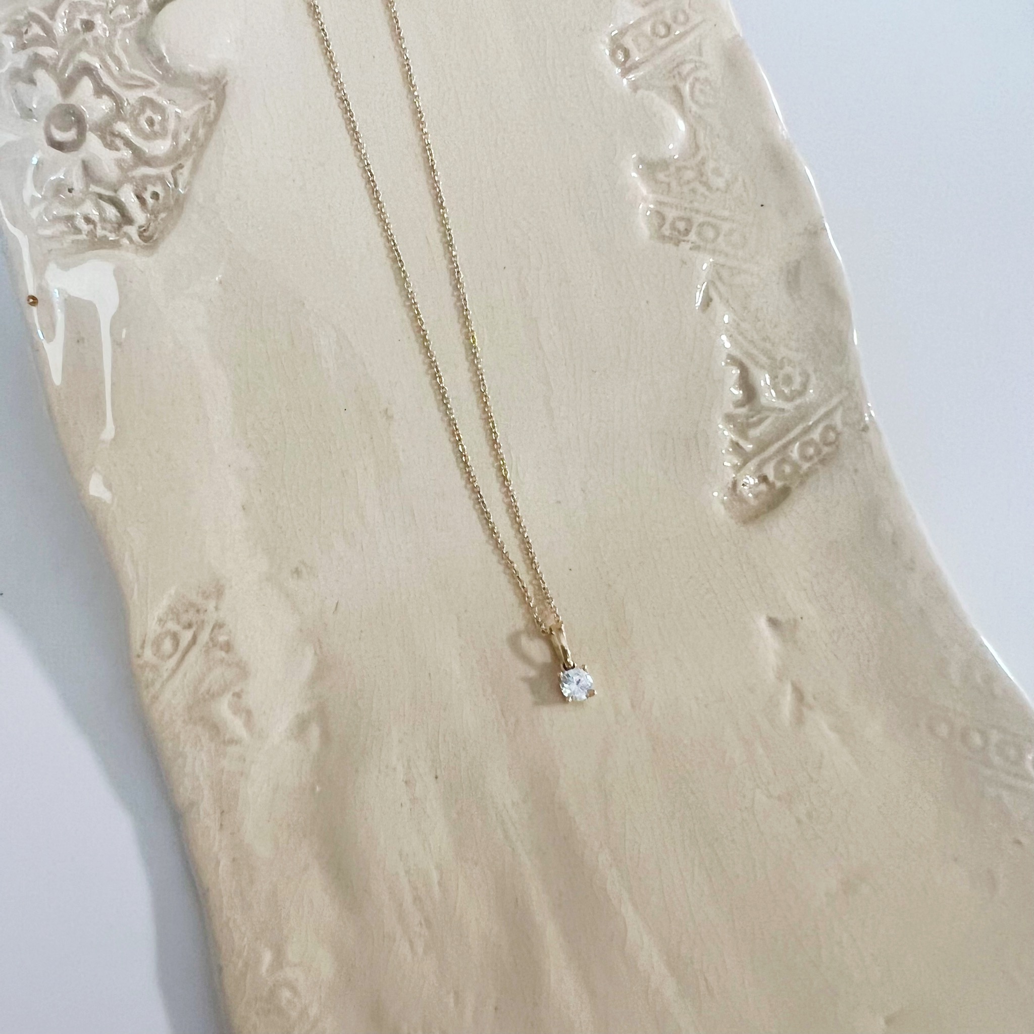 שרשרת מסוג “רולו”(חוליות עדינות) עשויה זהב 14 קראט אליה מחובר תליון זהב משובץ זרקון קריסטל לב או שחו לבחירה.