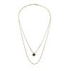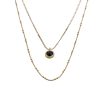 תליון עגול בציפוי זהב 24 קראט עם שיבוץ אבן סברובסקי התלוי על שתי שרשראות באורכים שונים.