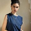שכבה שלישית שרשרת דיסקית בציפוי כסוף עם אבני חן קטנות.
