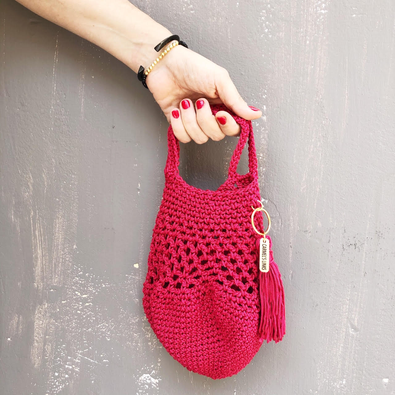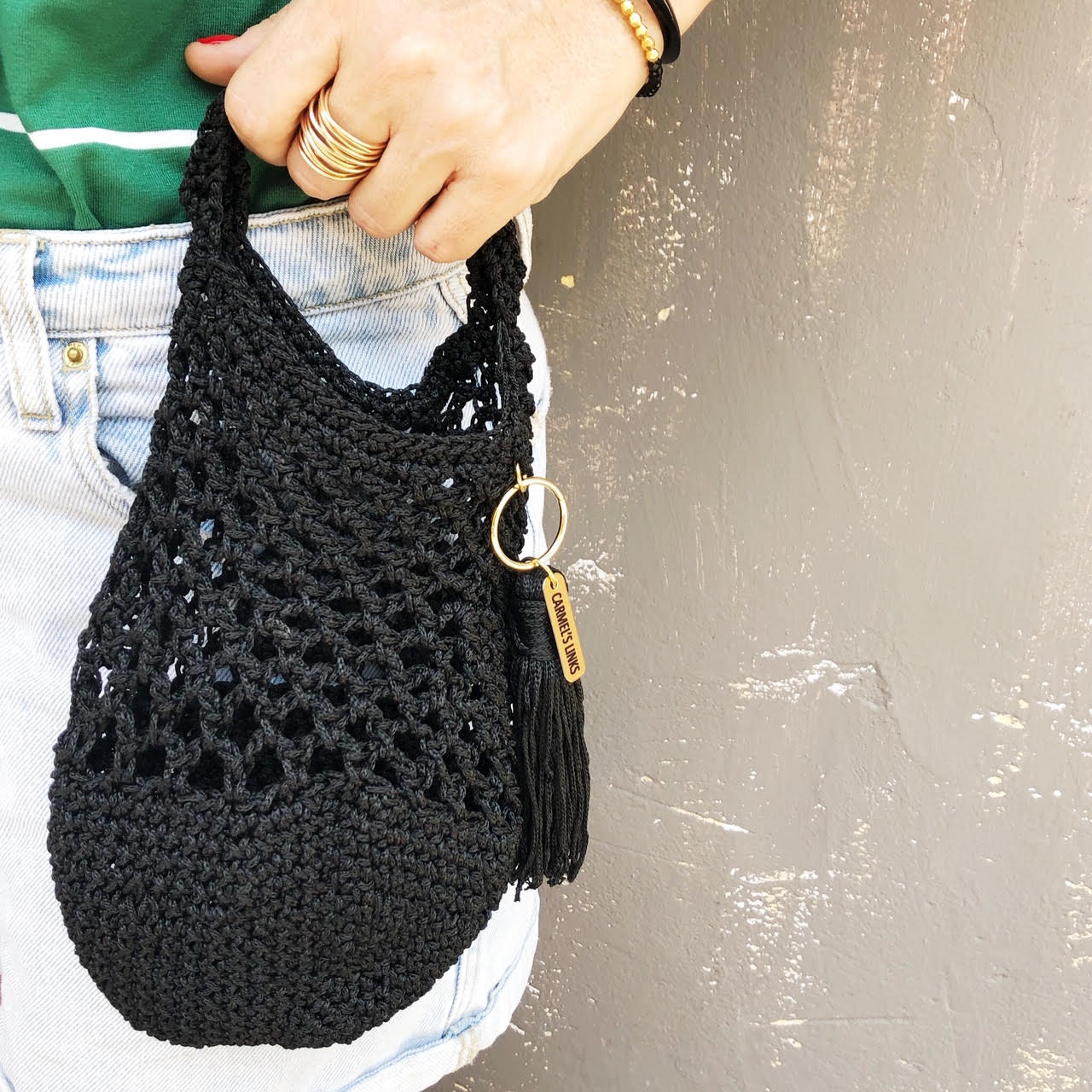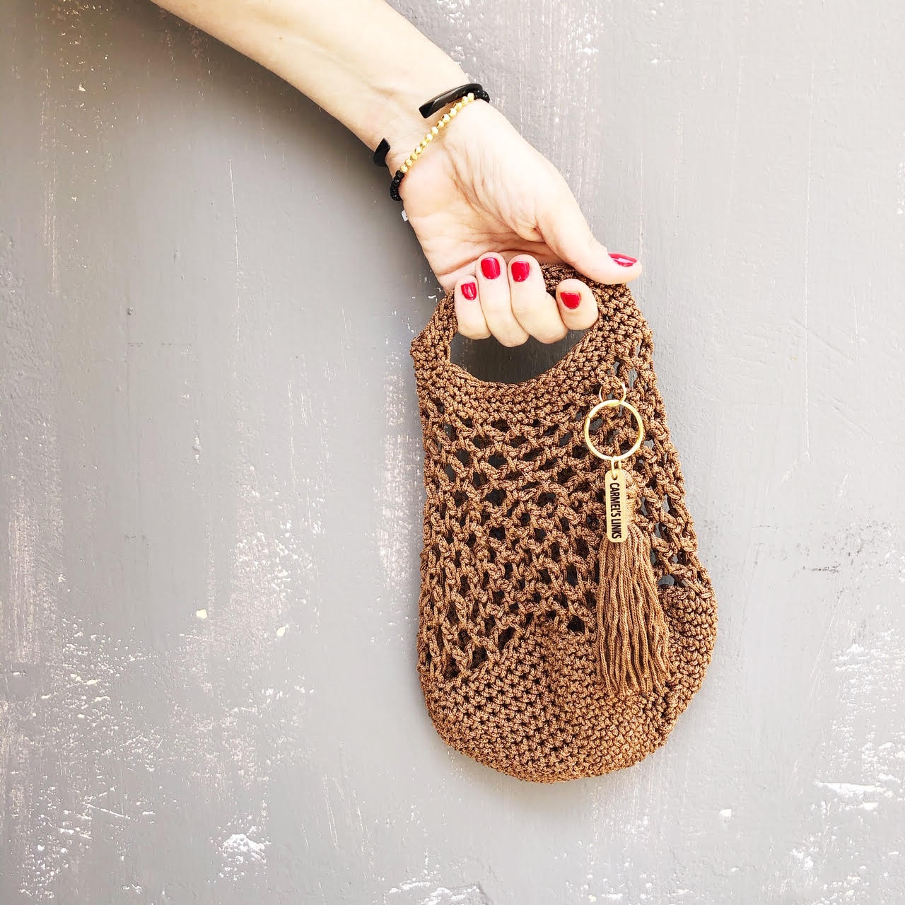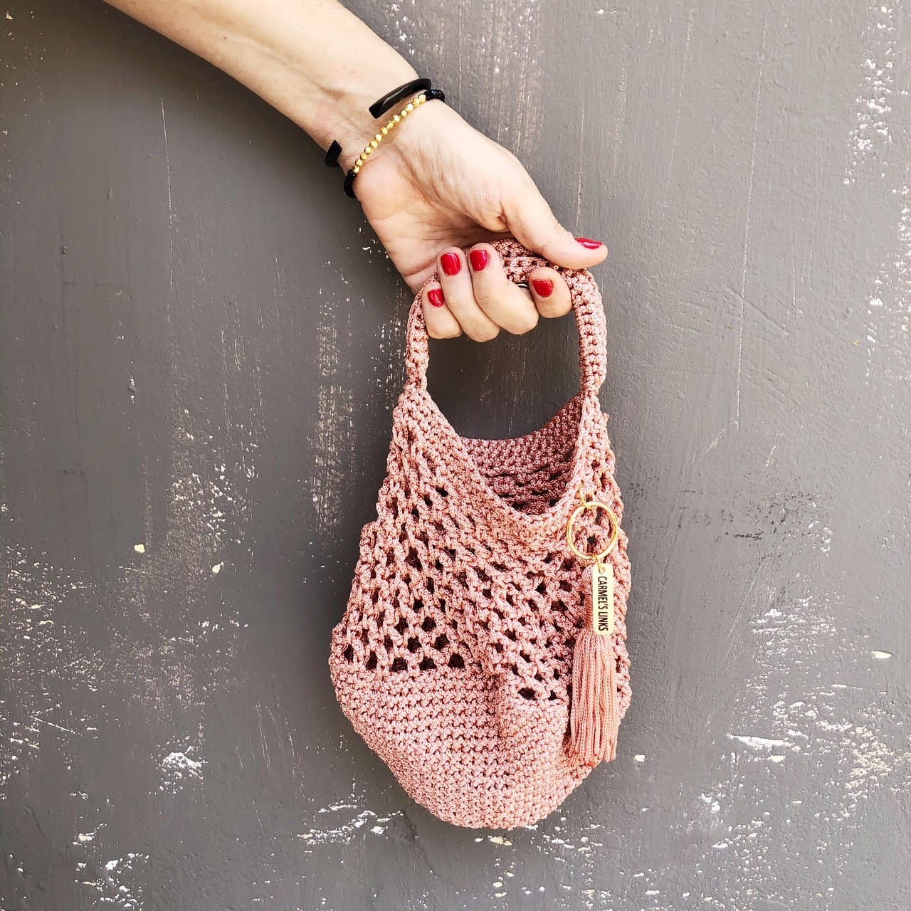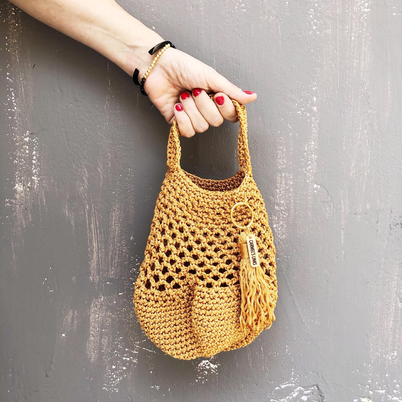 תיק סלין סרוג בעבודת יד עם חיבורים מזהב