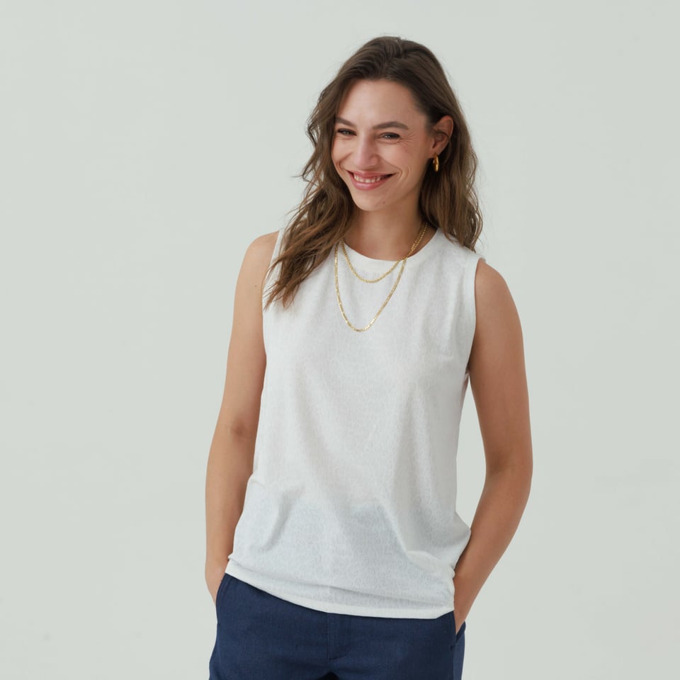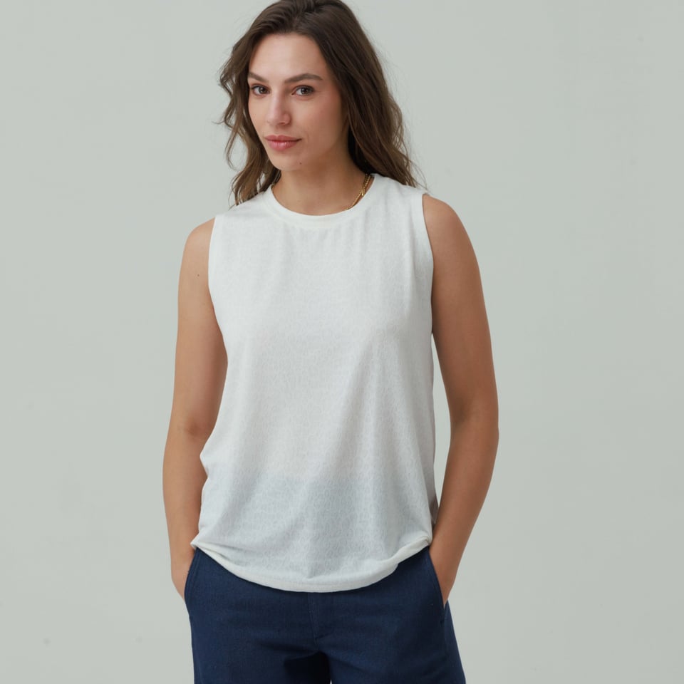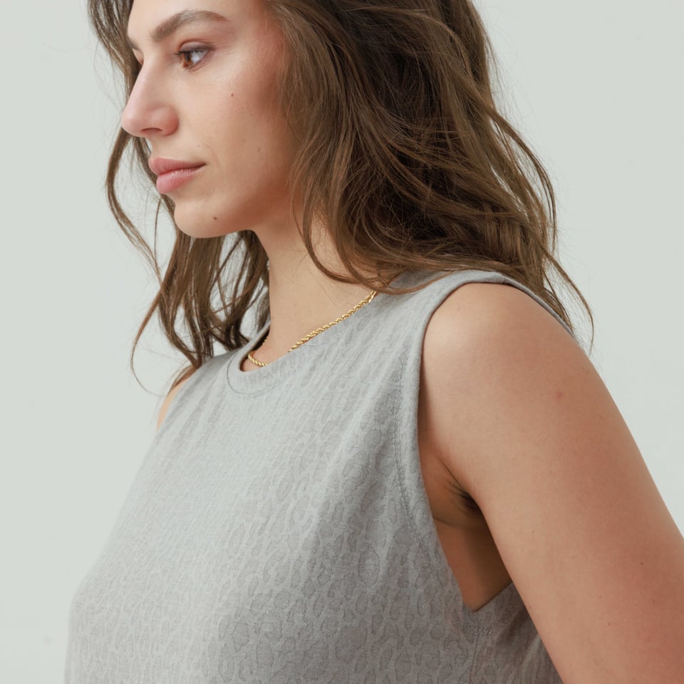 גופיה קלאסית מקולקציית “פעימה שניה” מבד נעים נעים.