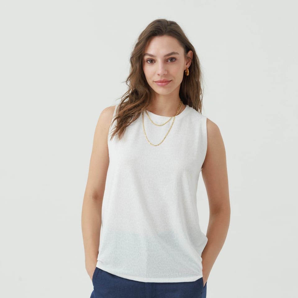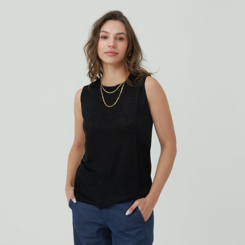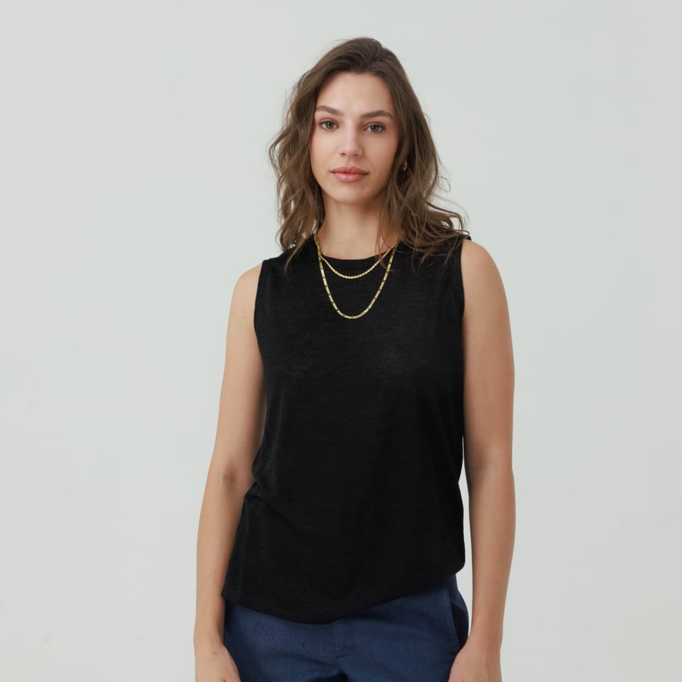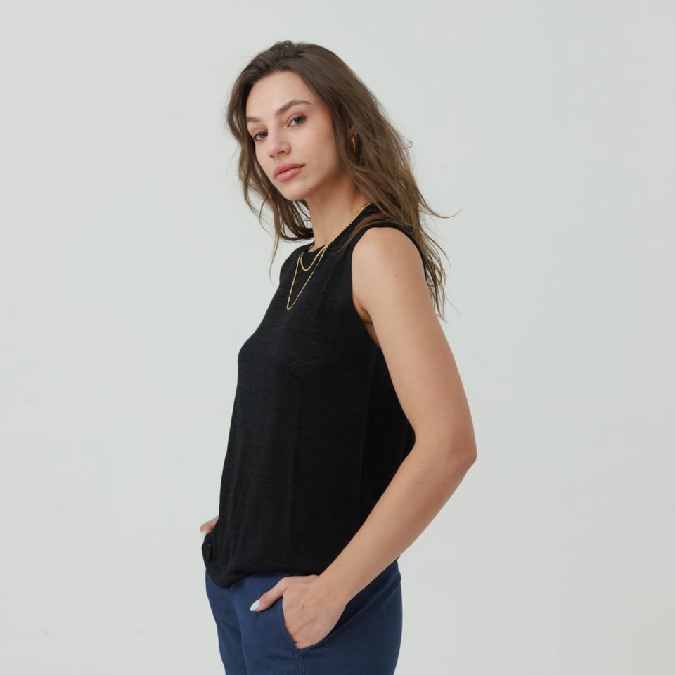 גופיה קלאסית מקולקציית “פעימה שניה” מבד נעים נעים.