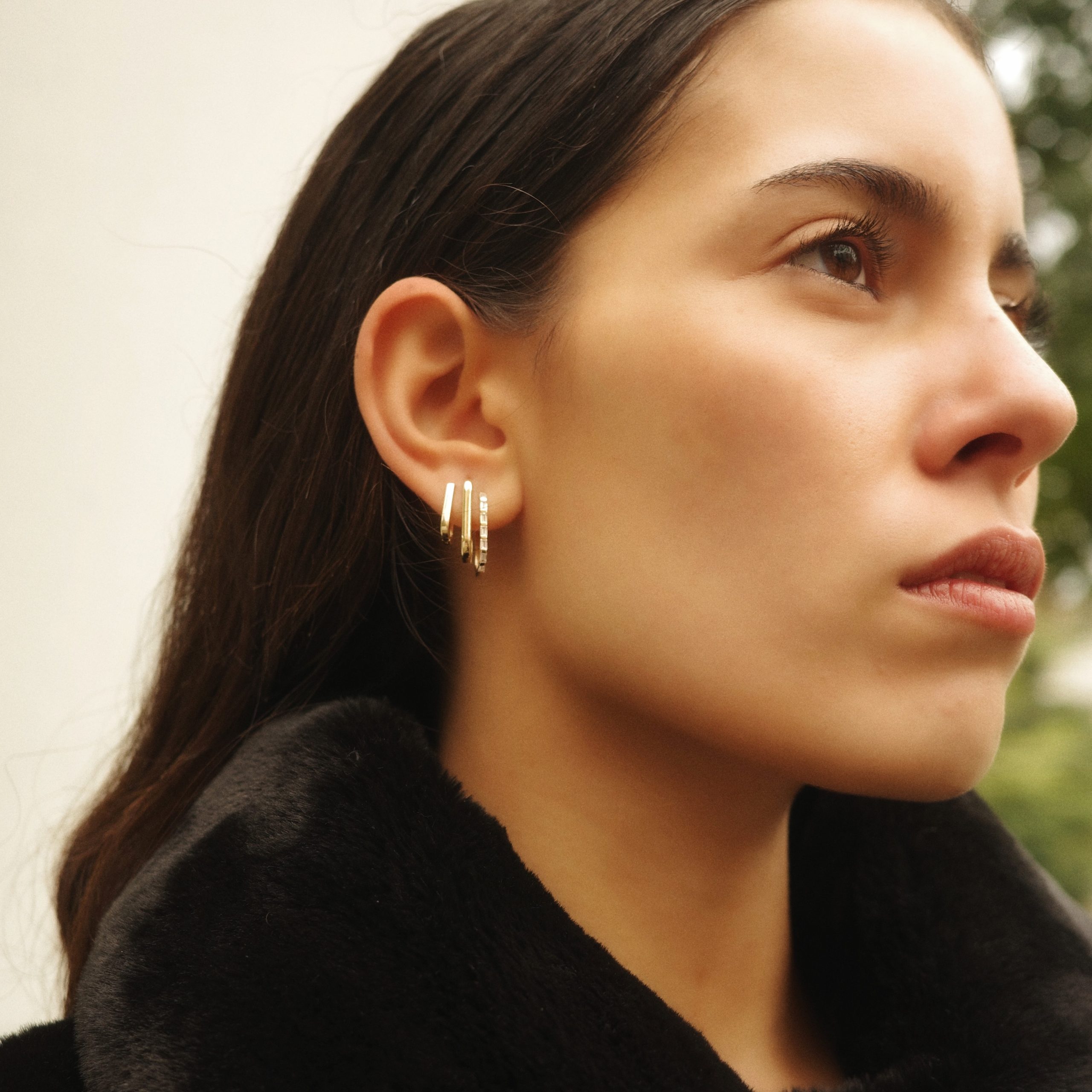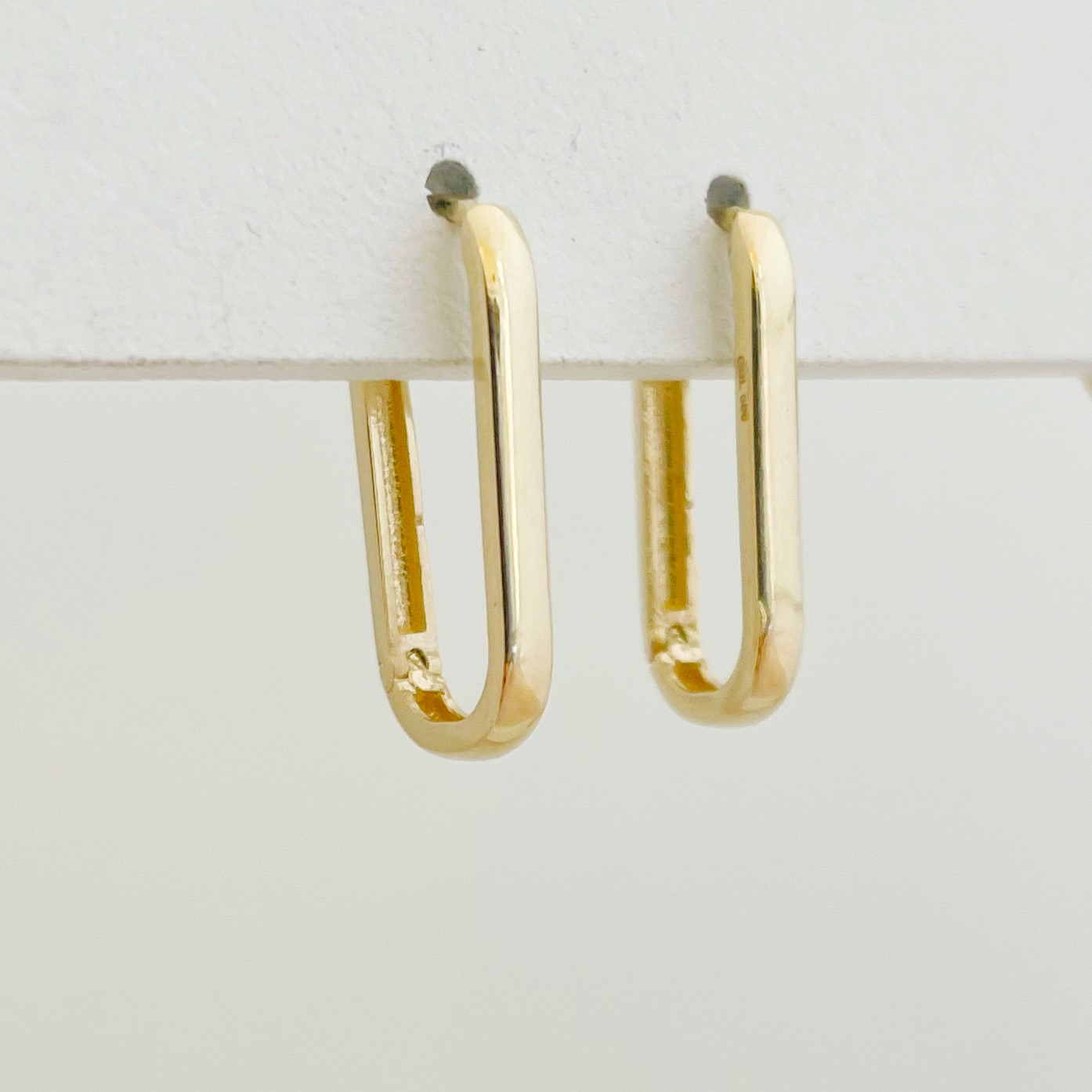 עגילי חישוק מלבן קלאסיים עשויים זהב מלא 14 קראט עם סגירה נוחה במיוחד.