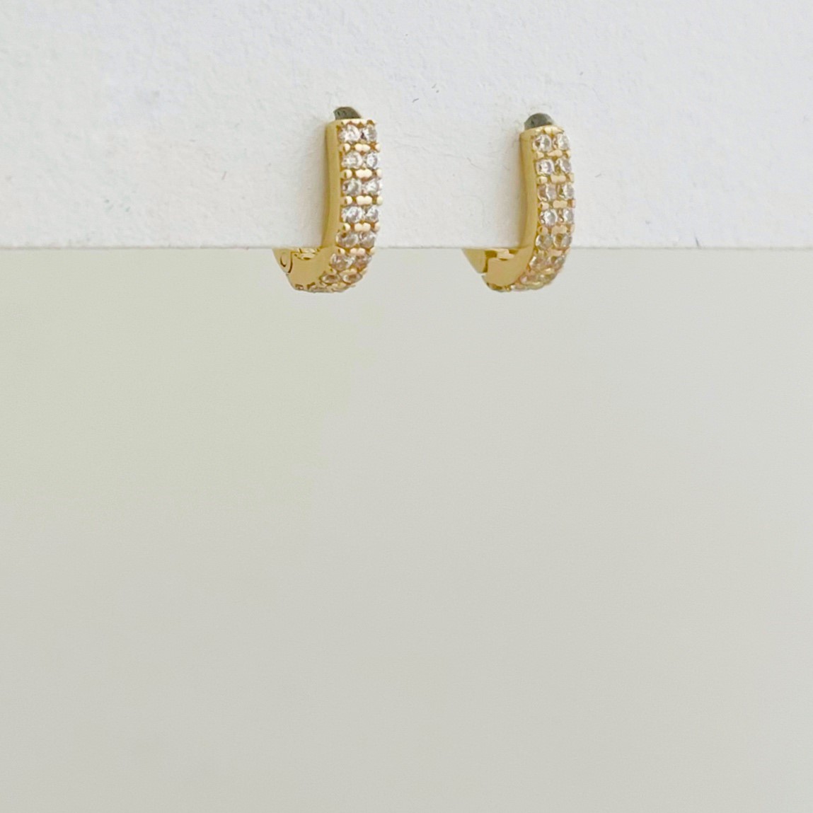 עגילי חישוק מלבן קלאסיים עשויים זהב מלא 14 קראט עם סגירה נוחה במיוחד, משובצים אבני קריסטל קטנות משגעות.