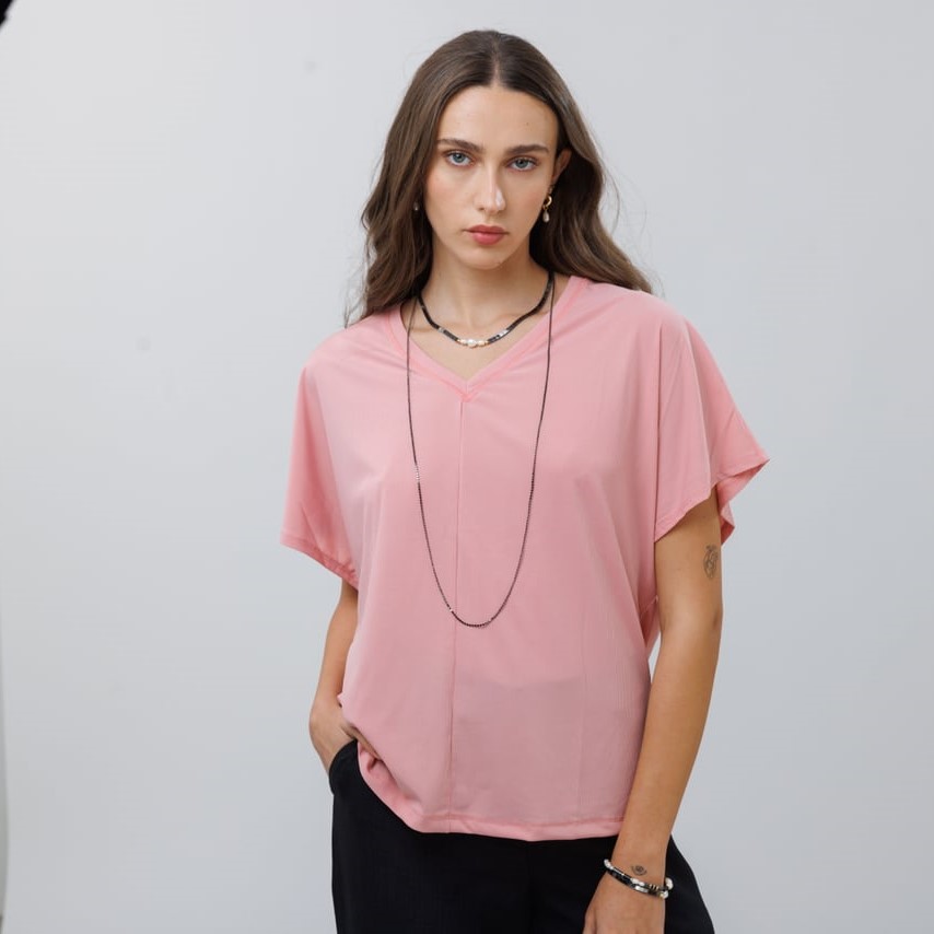 חולצה בגזרת אובר סייז עם מפתח וי מושלם עשויה בד ריב עדין ונעים, מגיעה בחמישה צבעים.