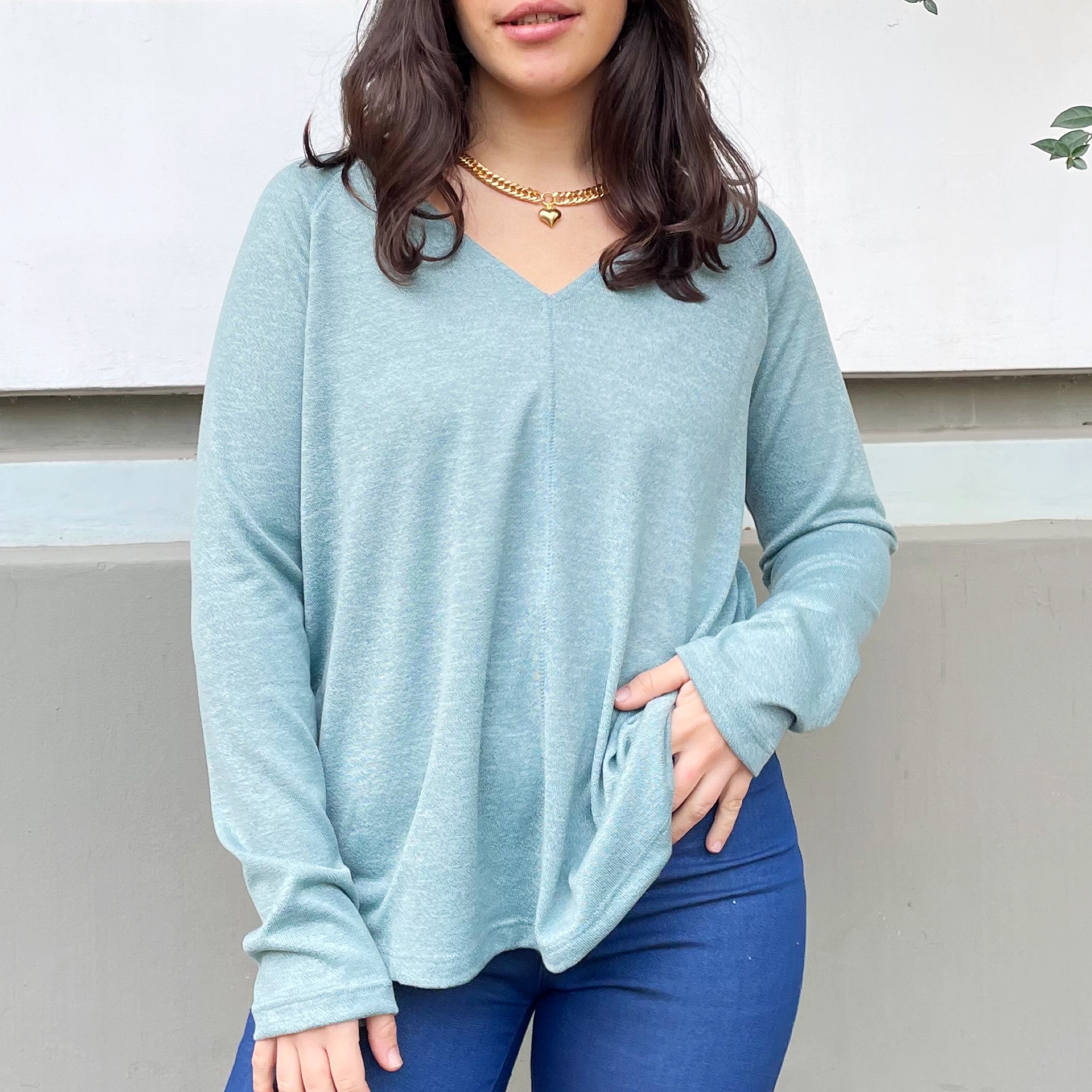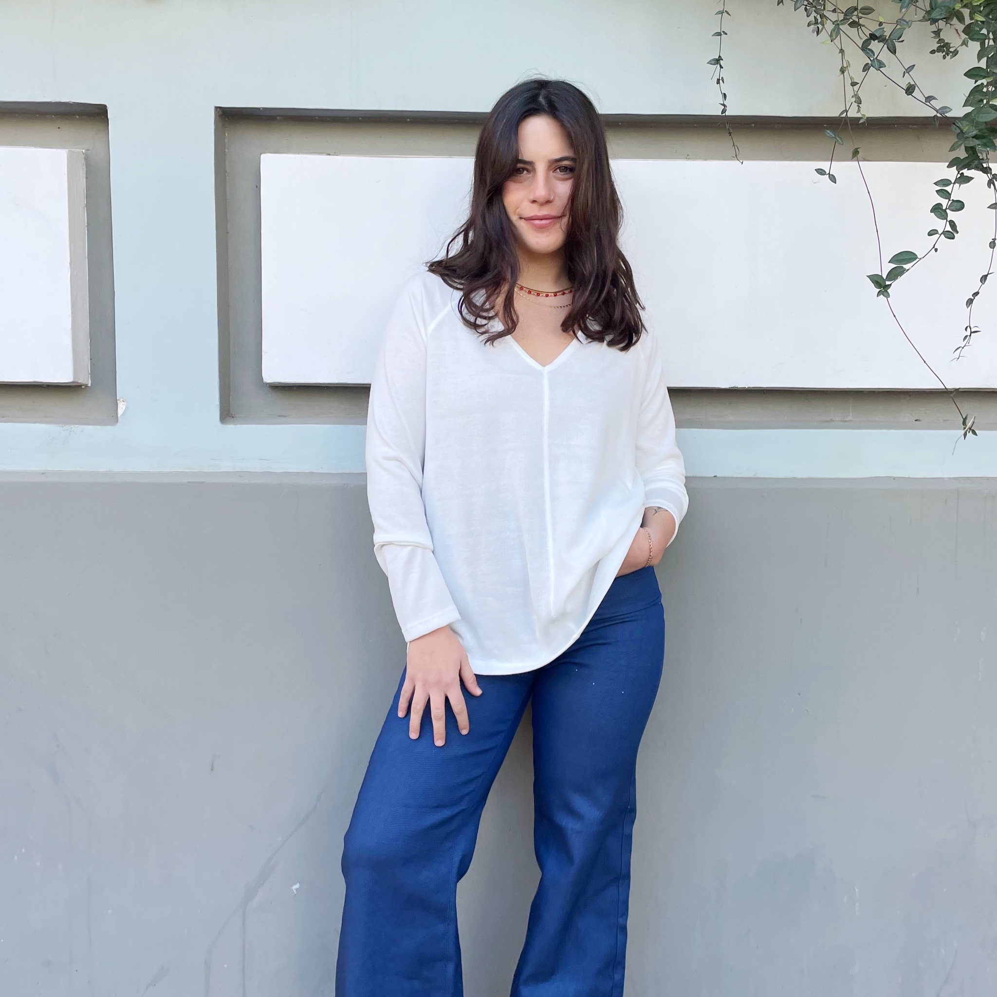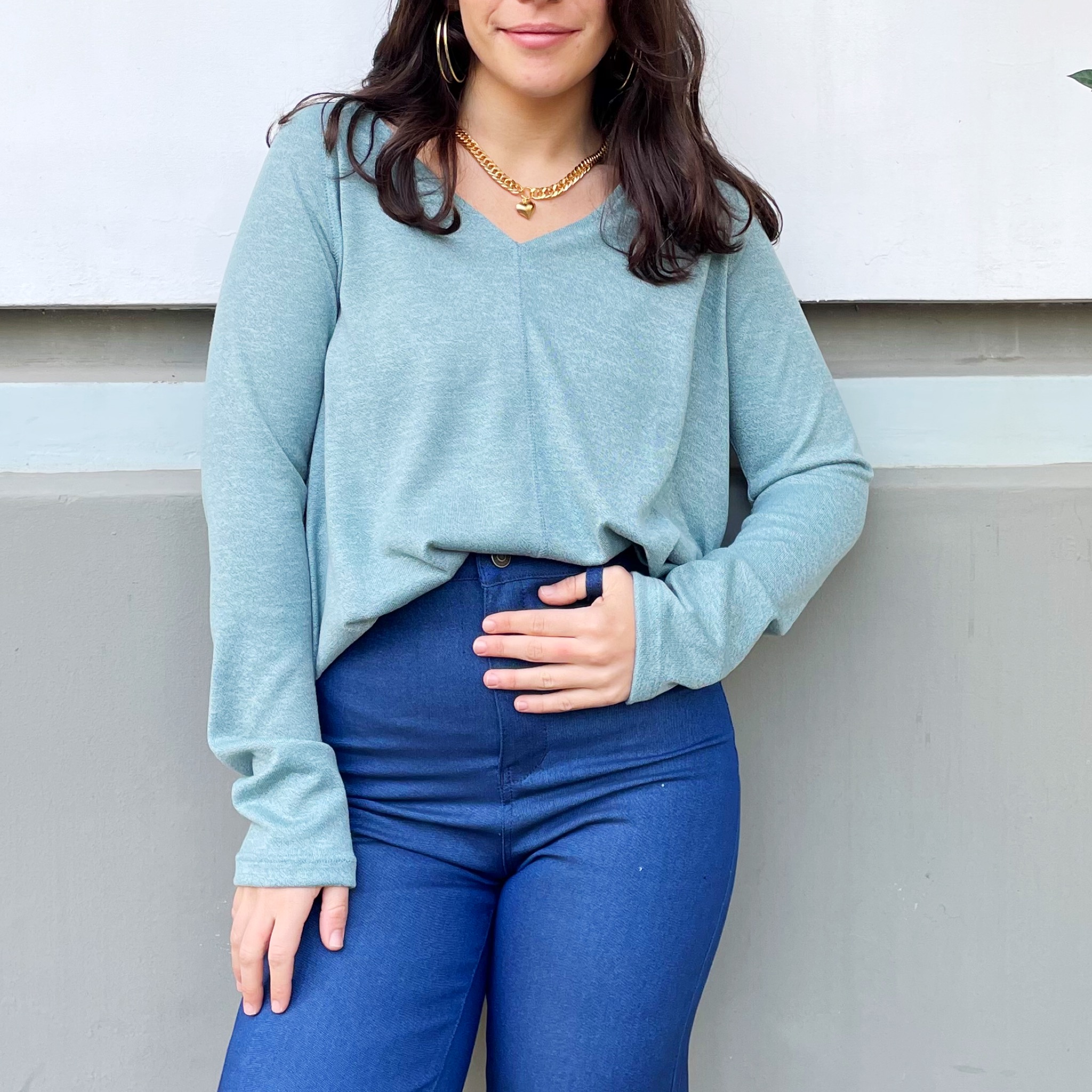 חולצה בגזרה קלאסית מדויקת עם מפתח וי מושלם, מחממת ונעימה, נינוחה ואוורירית.