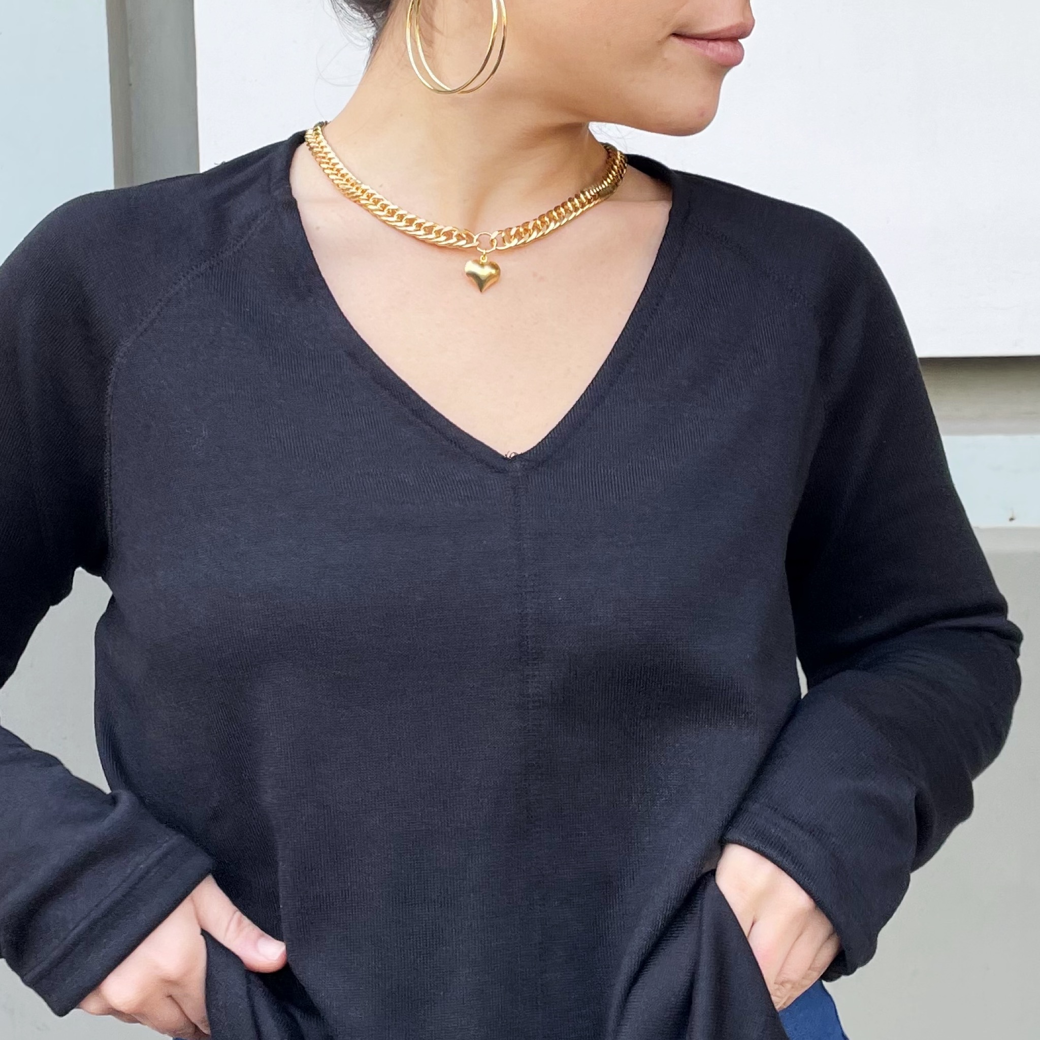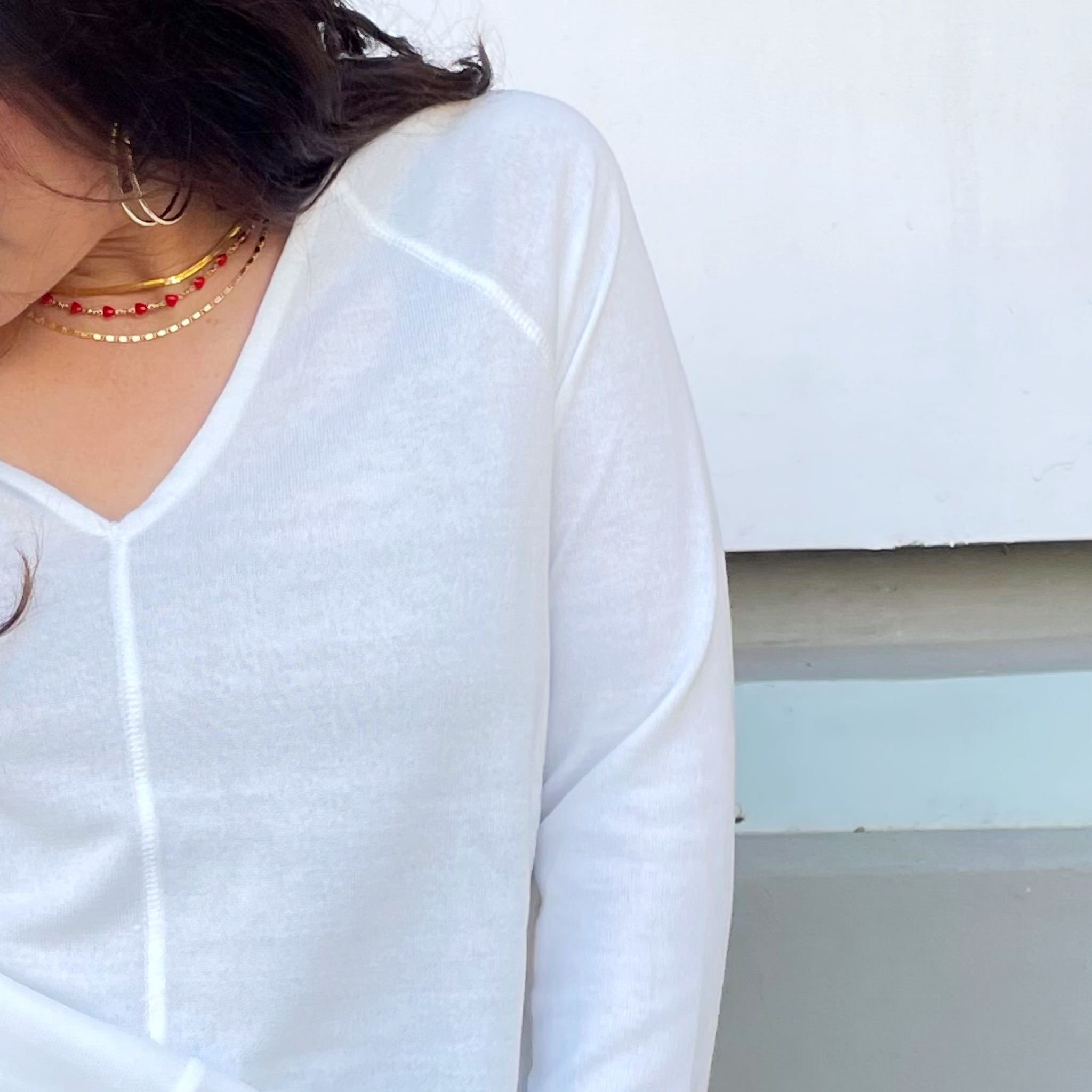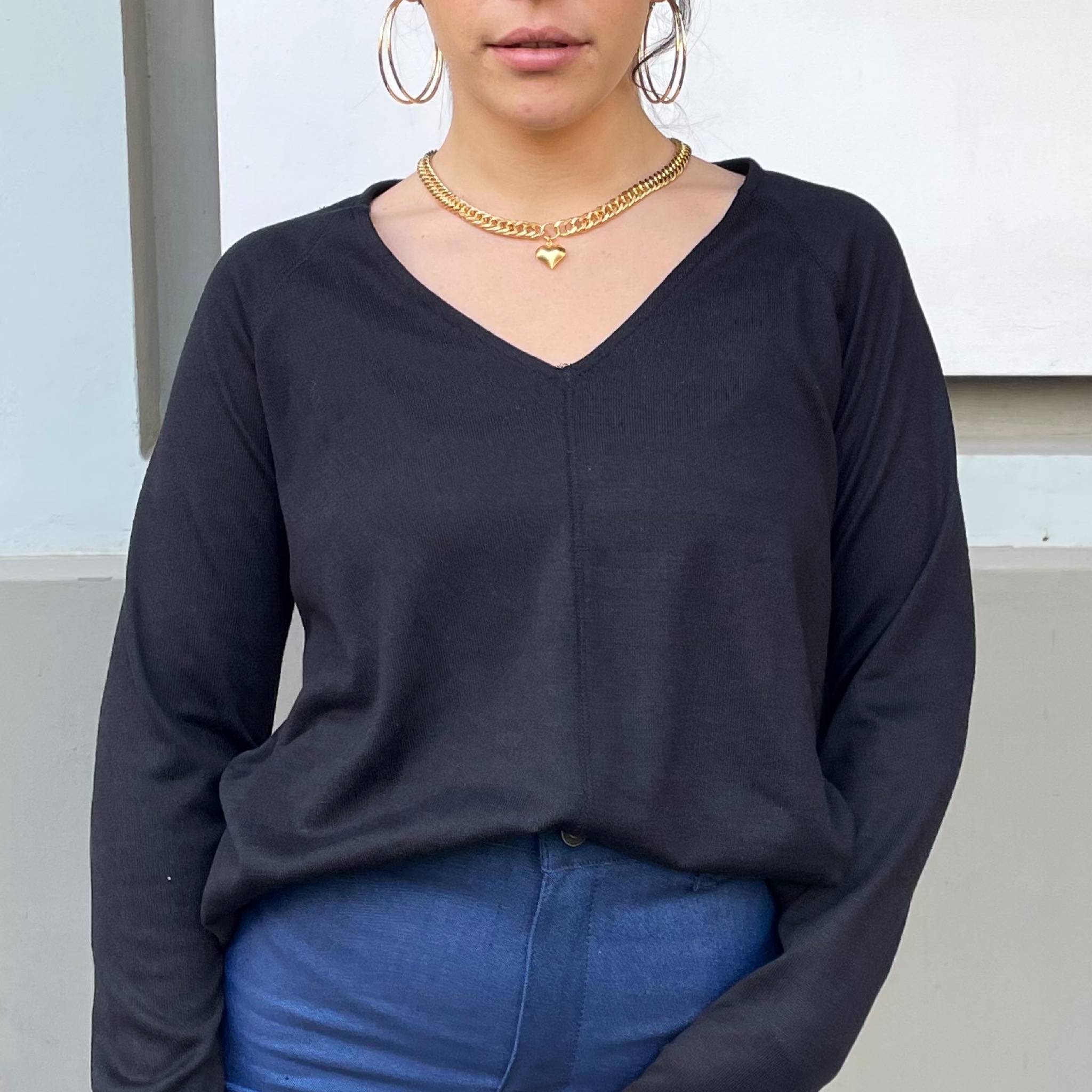 חולצה בגזרה קלאסית מדויקת עם מפתח וי מושלם, מחממת ונעימה, נינוחה ואוורירית.