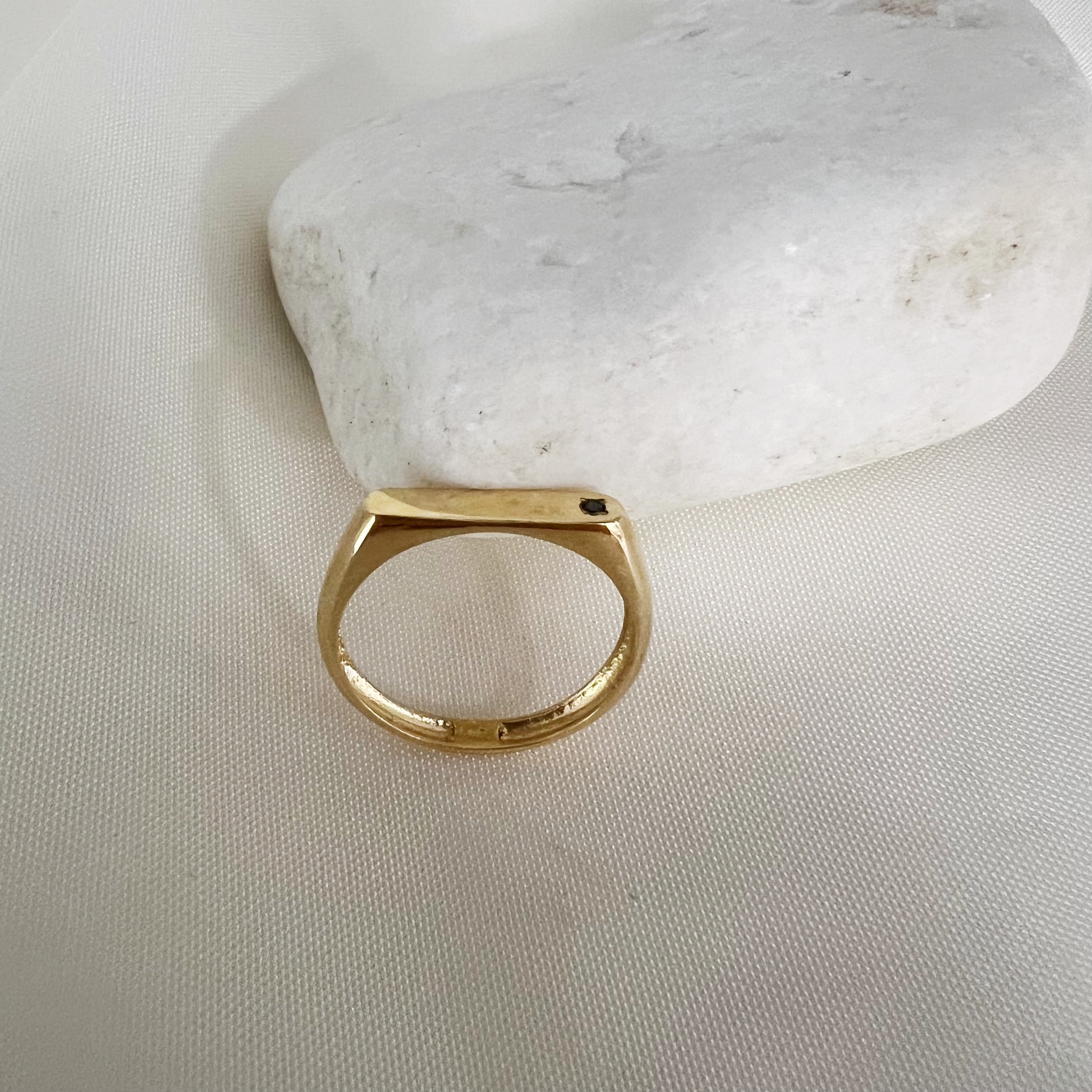 טבעת חותם מלבן אבן זהב 14 קראט.