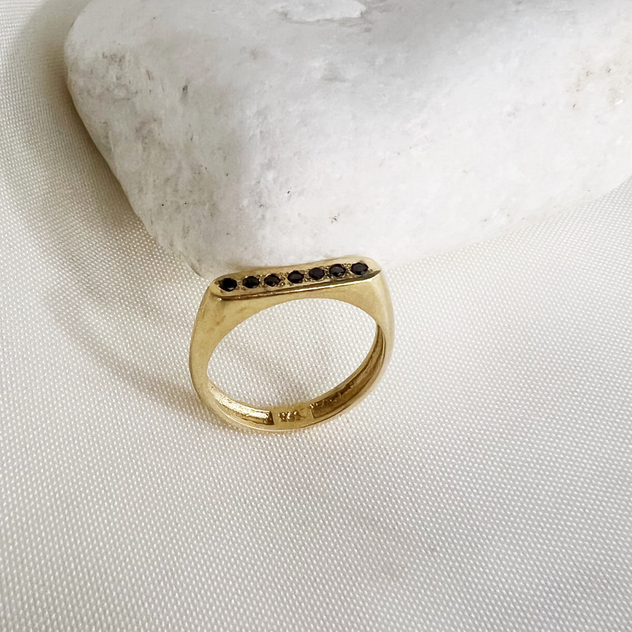 טבעת משגעת עשויה זהב 14 קראט משובצת זירקון שחור.