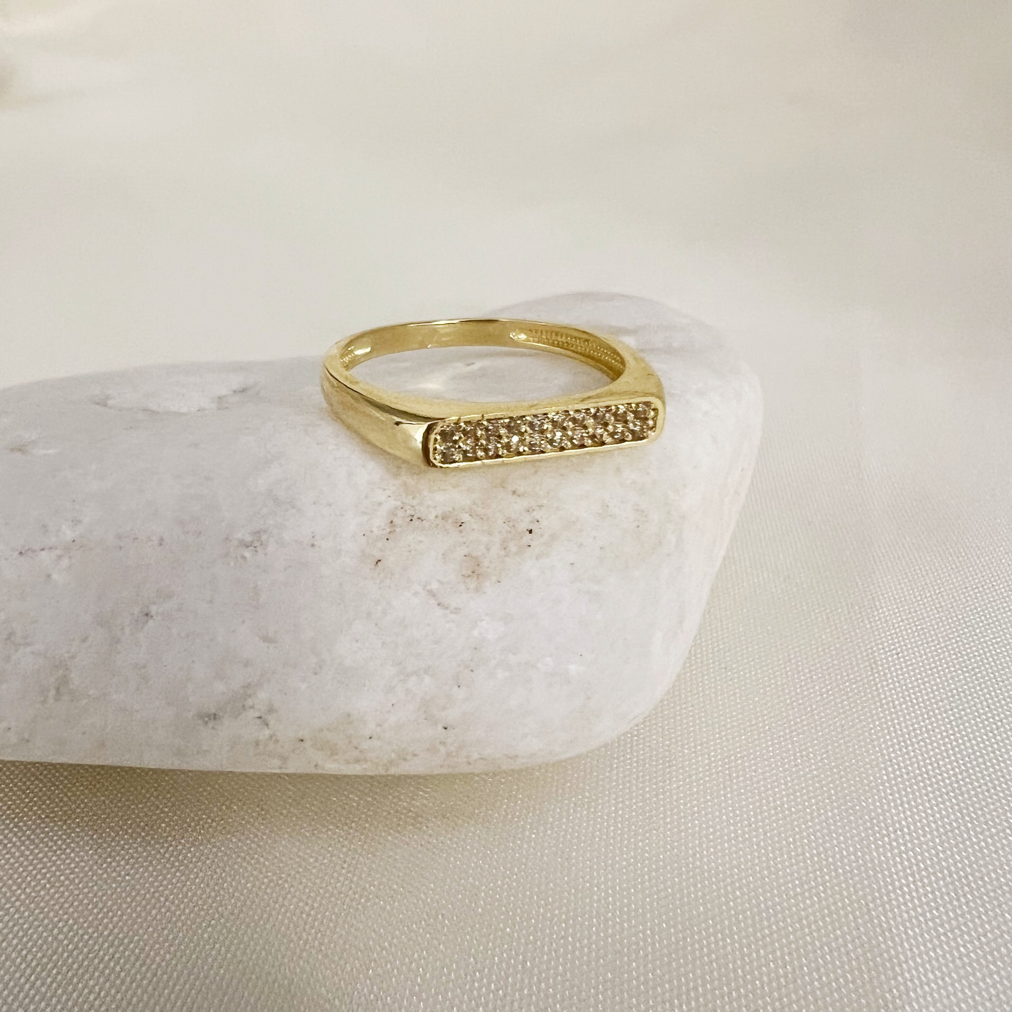 טבעת חותם מלבן אבני קריסטל זהב 14 קראט