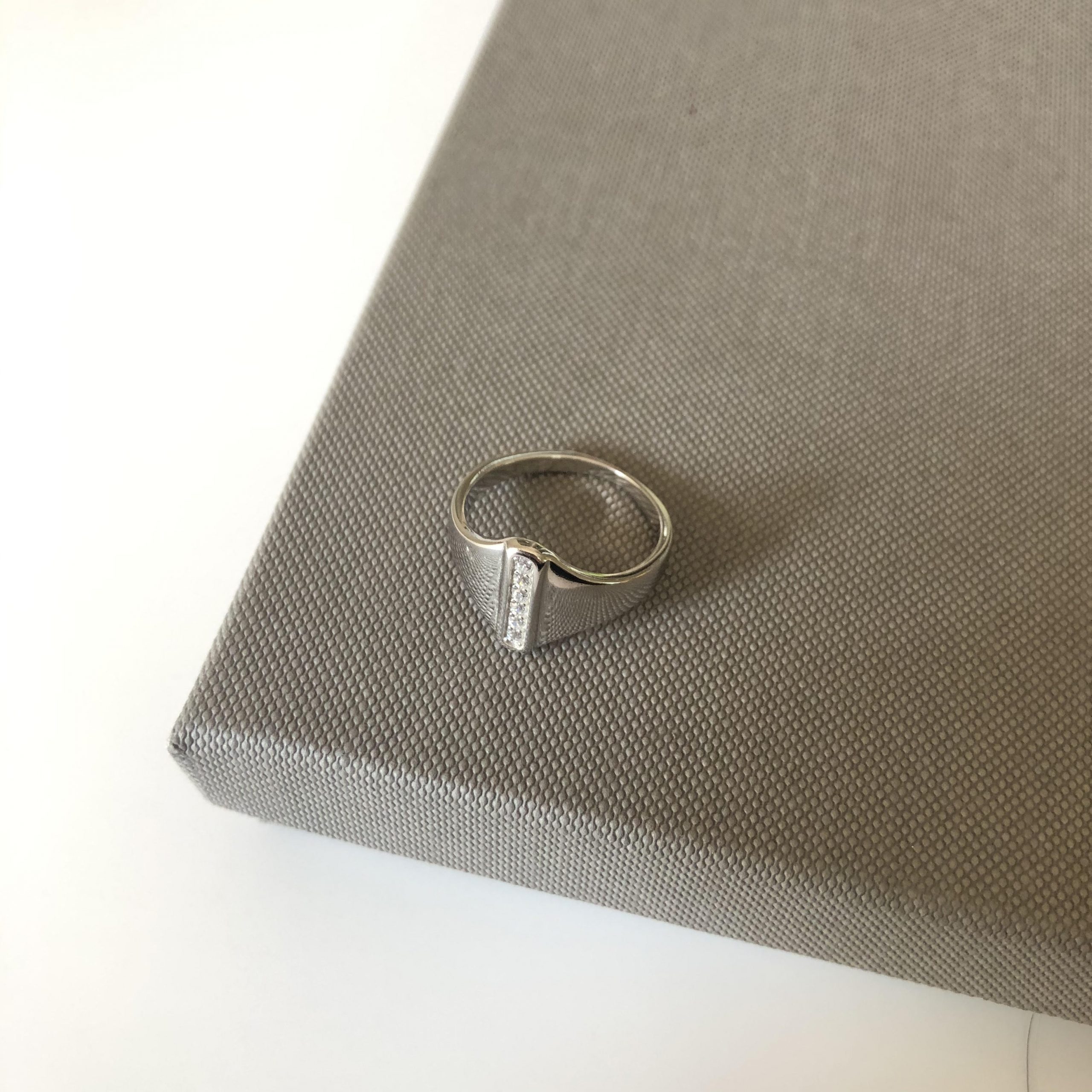 טבעת קלאסית עשויה כסף אמיתי, משובצת אבני קריסטל לבנות עדינות במרכז הטבעת לאורך.