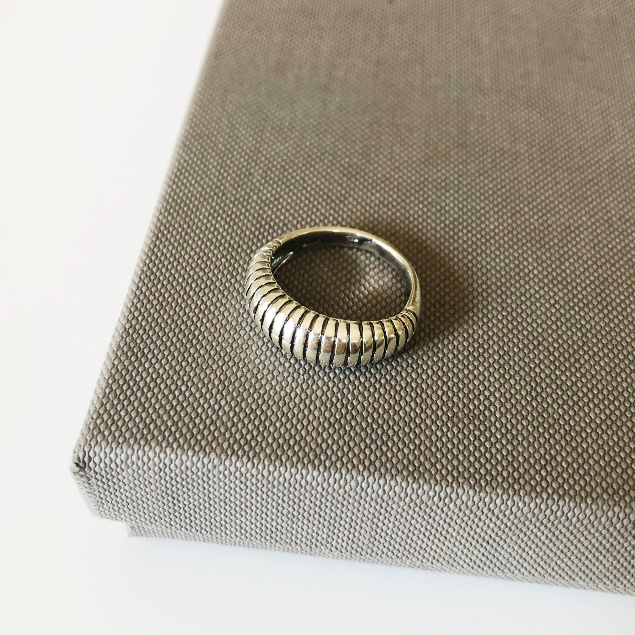 טבעת קלאסית עשויה כסף אמיתי עם טקסטורה של פסים עדינים.