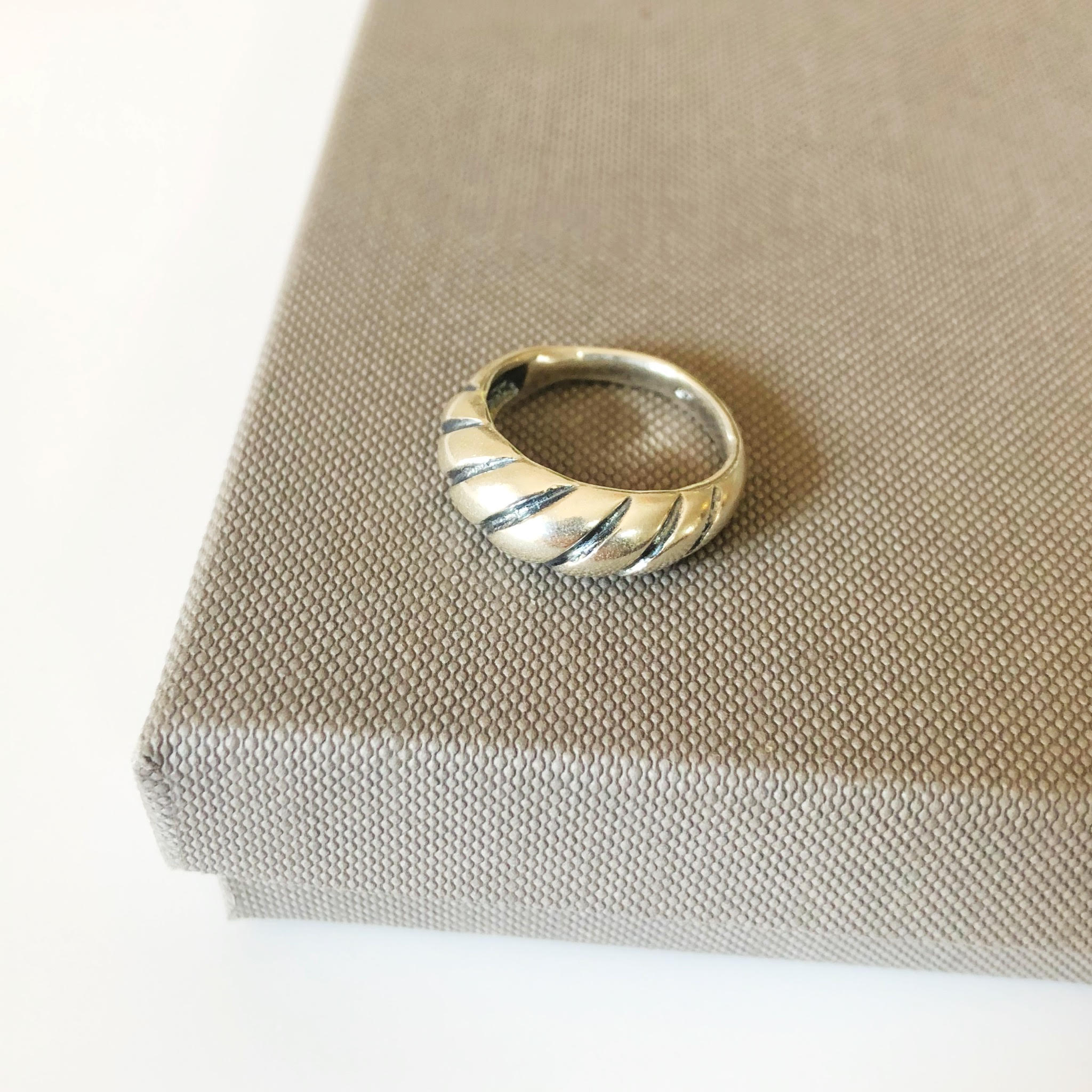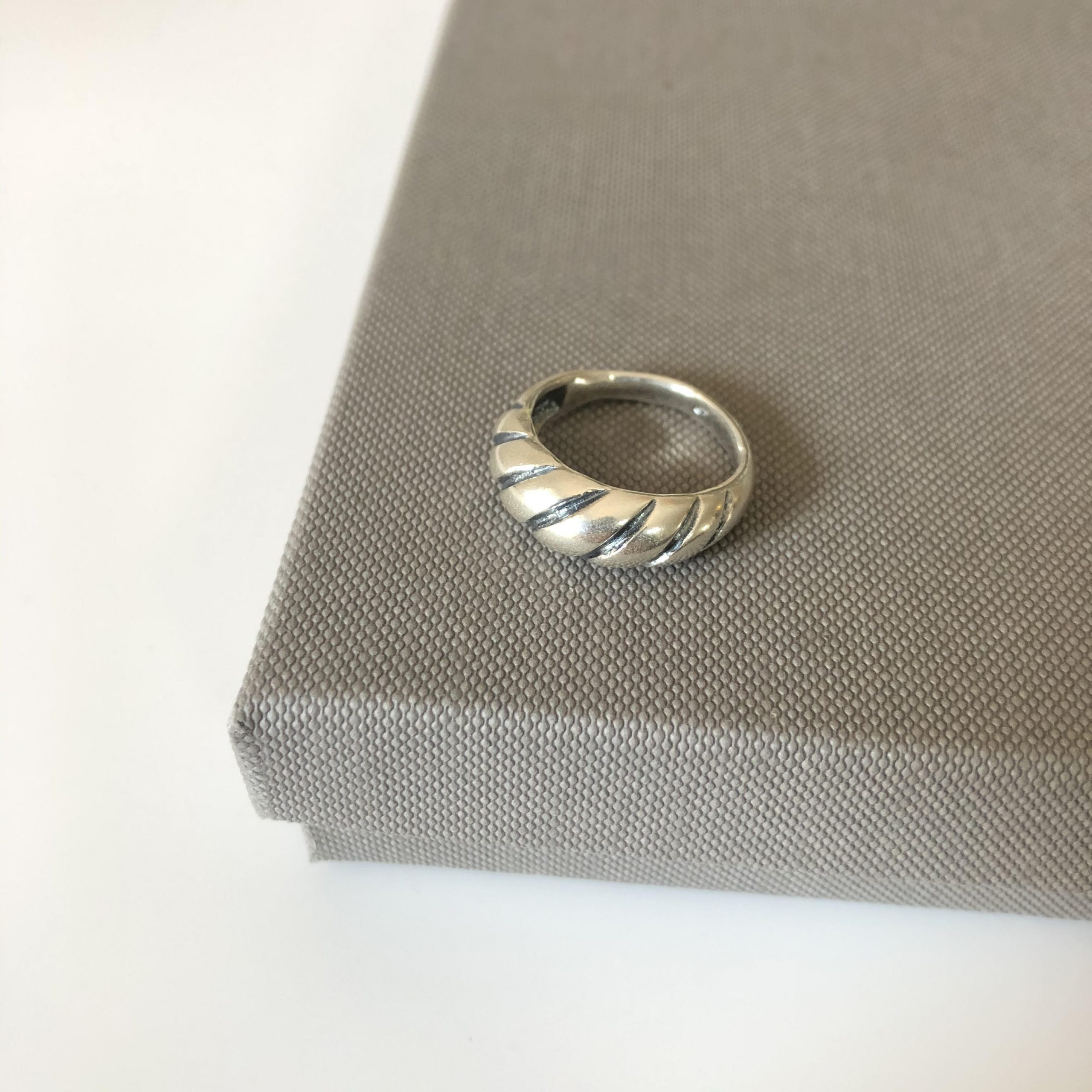 טבעת קלאסית עשויה כסף אמיתי עם טקסטורה של פסים אלכסונים עדינים.