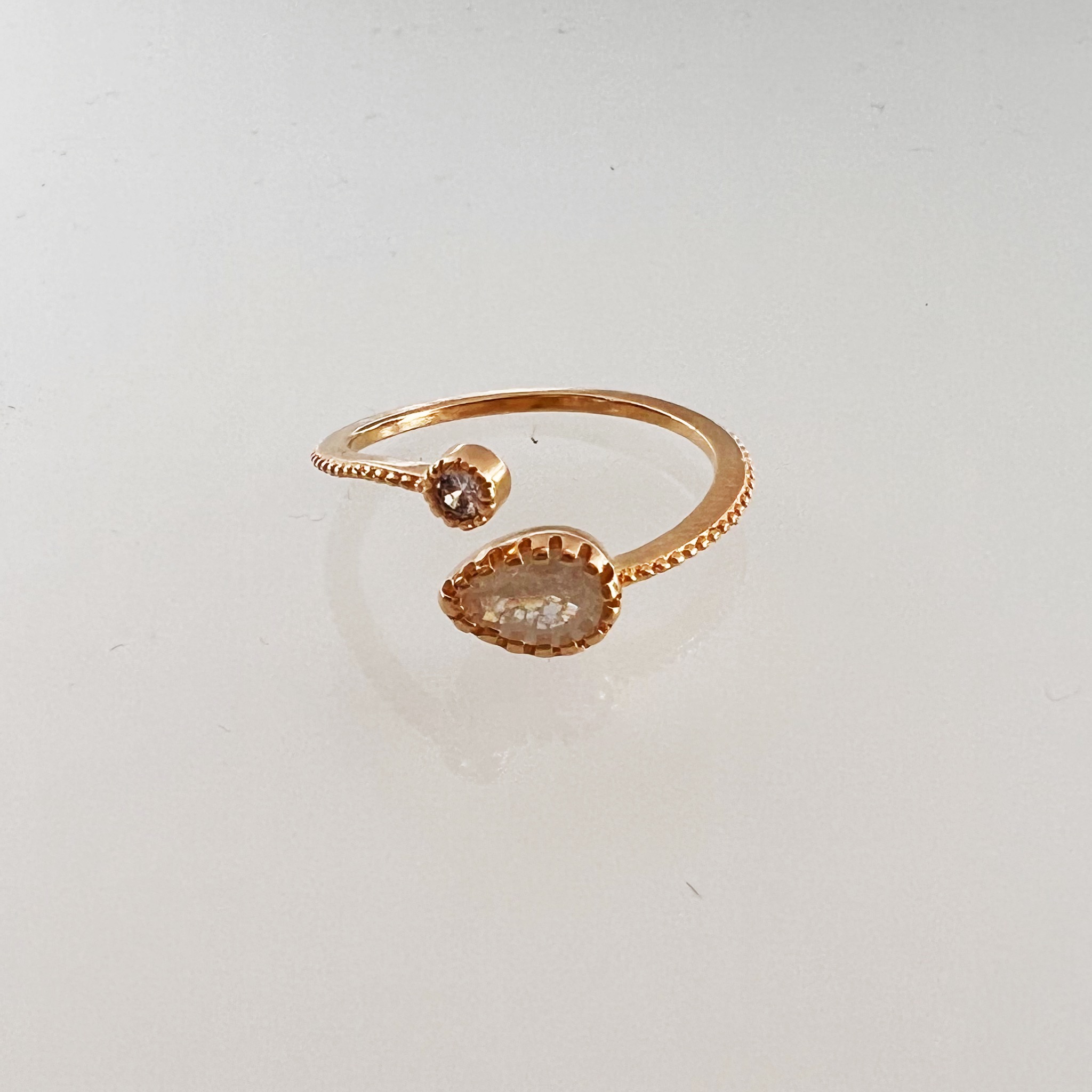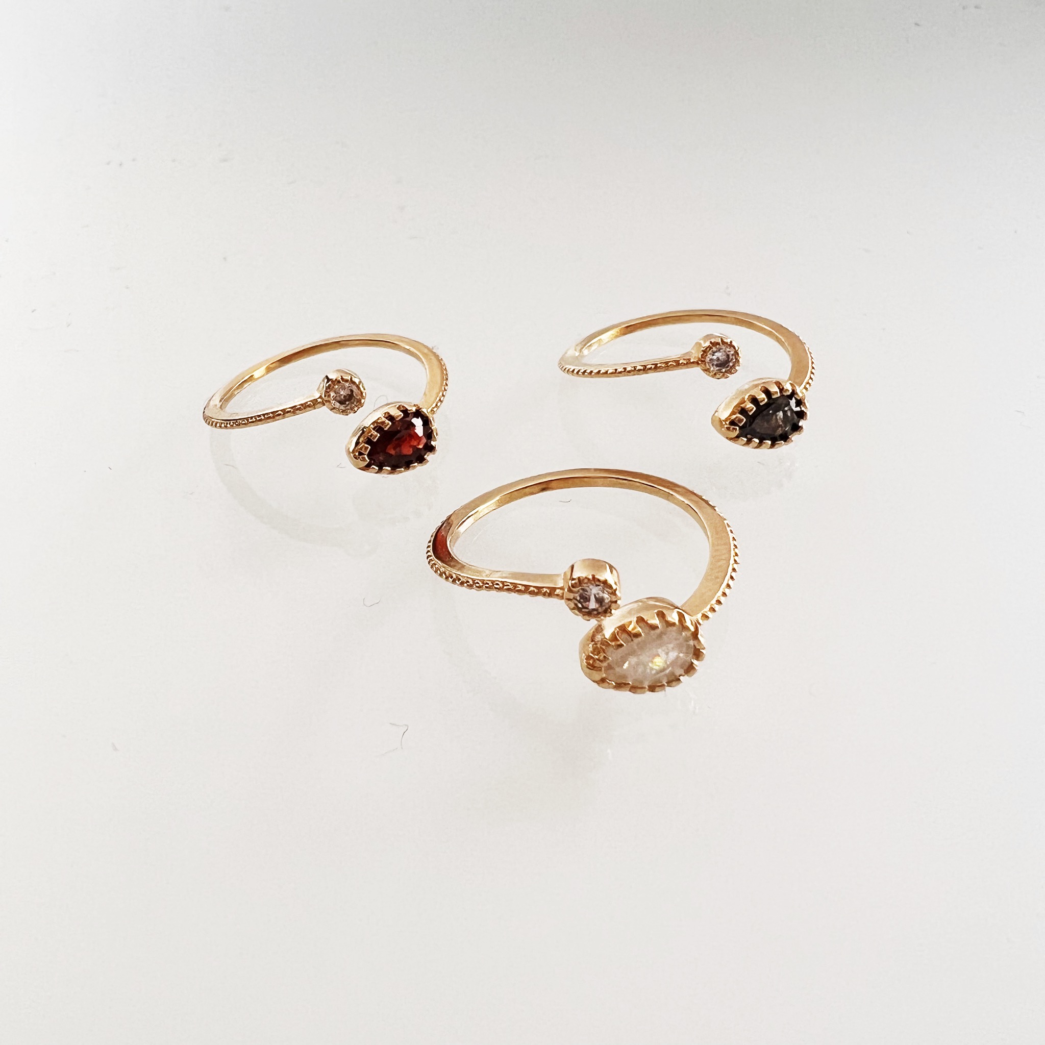 טבעת מקסימה משובצת שתי אבנים מקסימות. אבן קטנה בצבע קריסטל ואבן נוספת בצבע לבחירה: אפור, בורדו, ירוק מנטה בהיר.