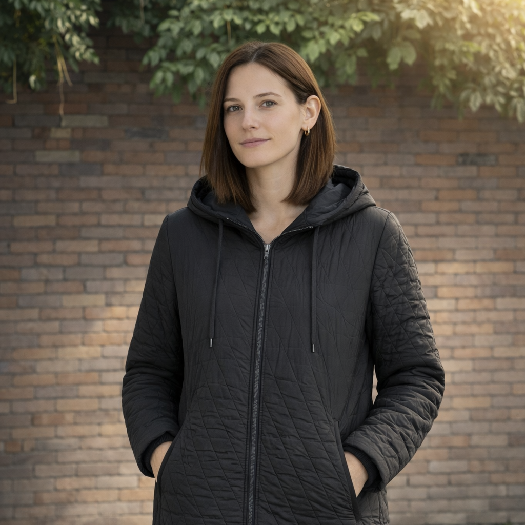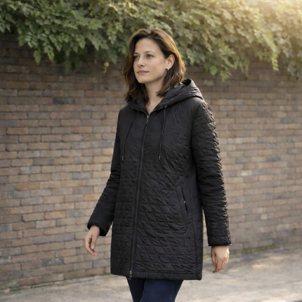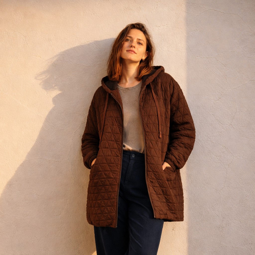 מעיל קווילט מחמם ונוח במיוחד, בעיצוב נקי ומחמיא שמתאים ליום־יום וגם ללוק אורבני אלגנטי.