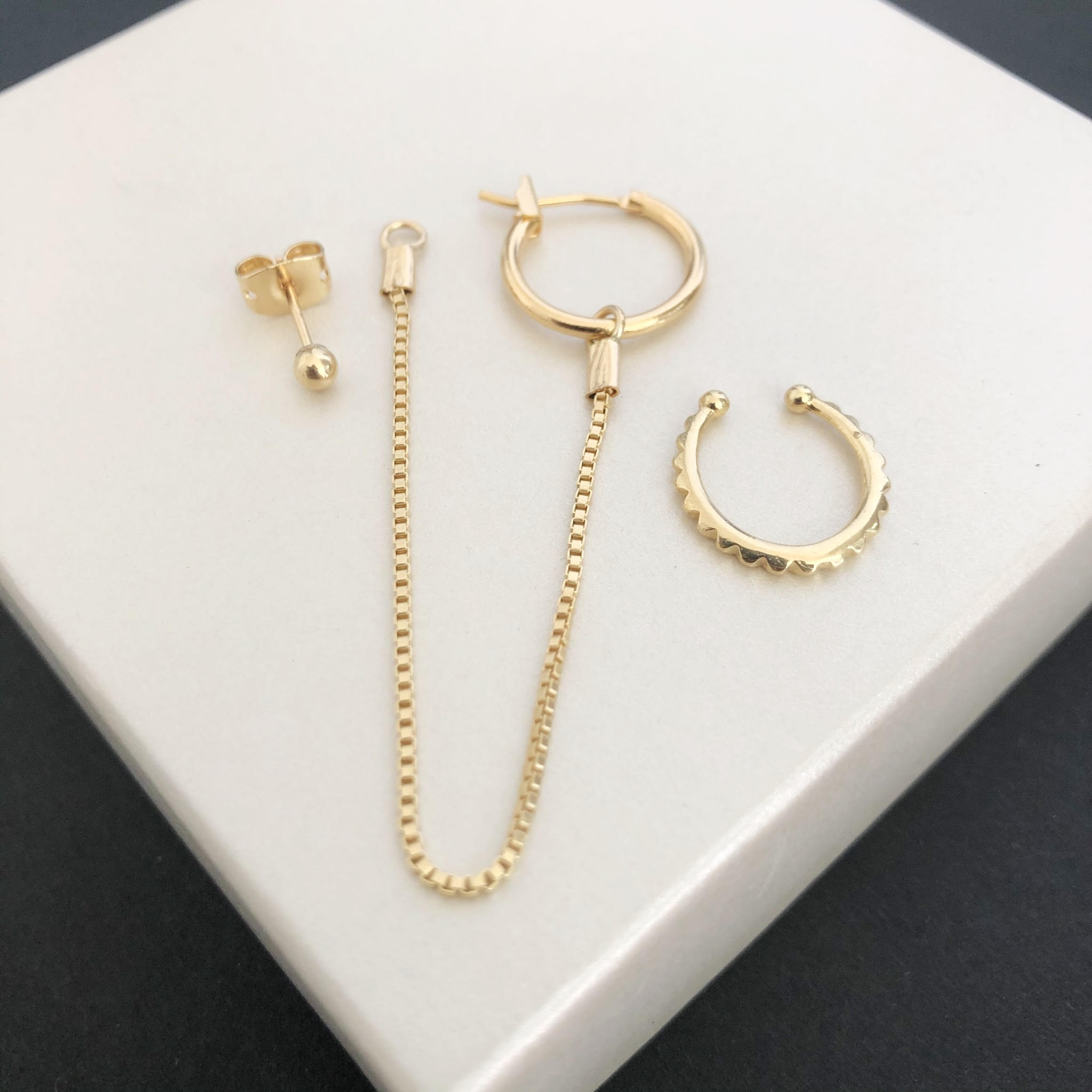 משדרג מאד את האוזן ללוק שיקי ועכשווי. מתאים לאוזן עם שני חורים או למראה א-סימטרי בשתי האוזניים.