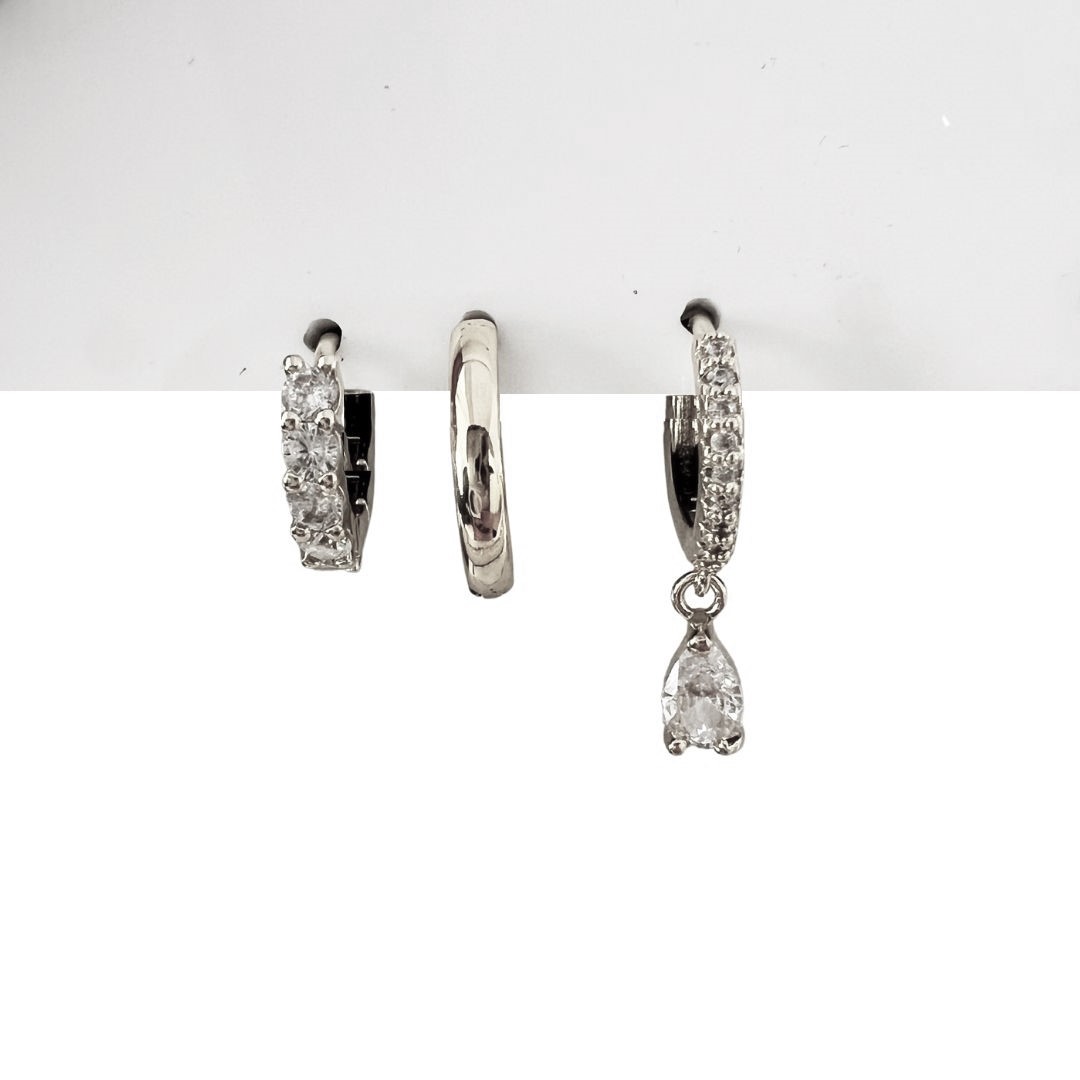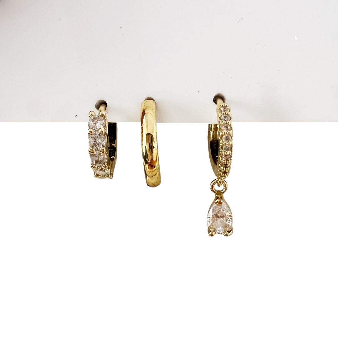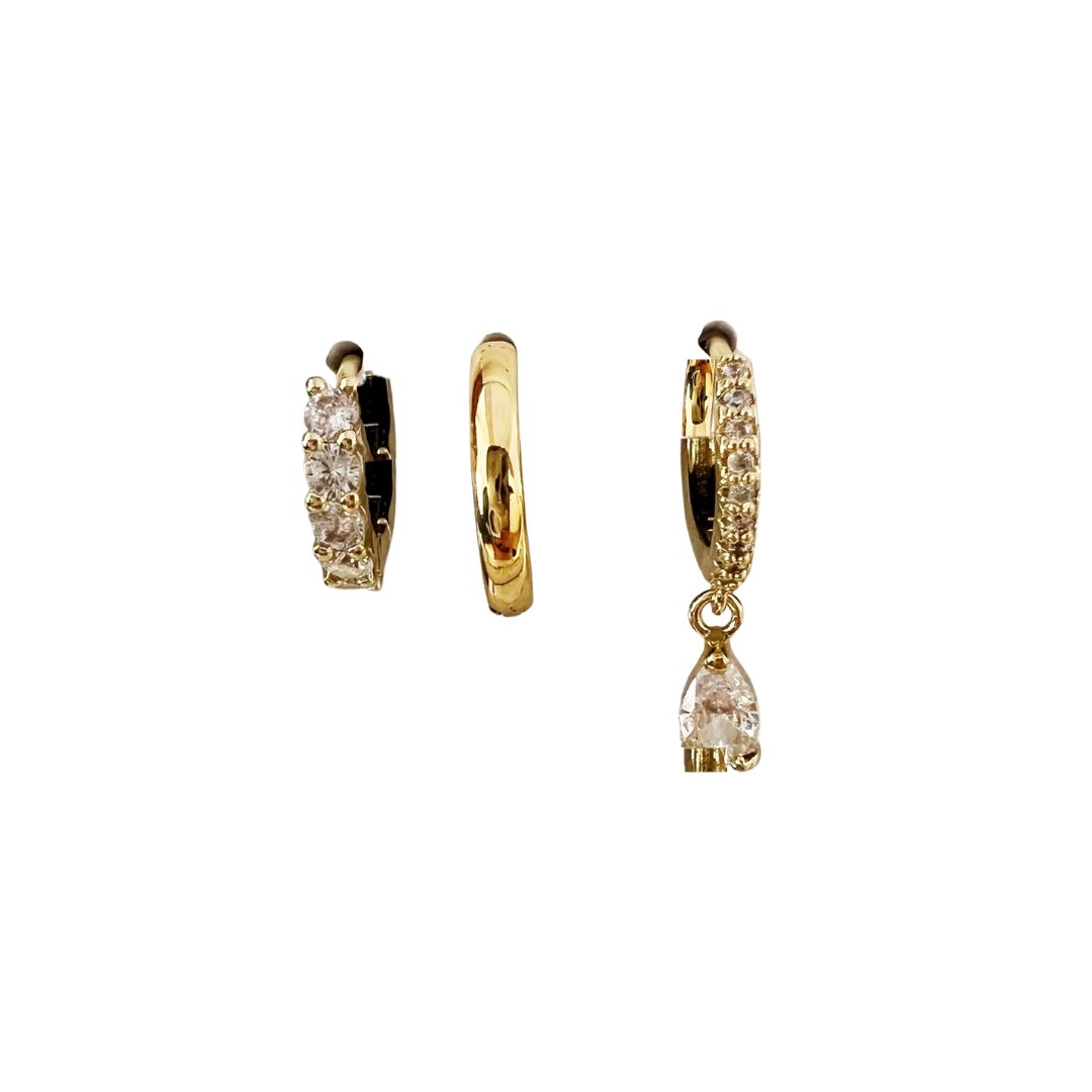 עגיל חישוק בקוטר של כ1 ס”מ משובץ חמש אבני קריסטל מיוחדות.