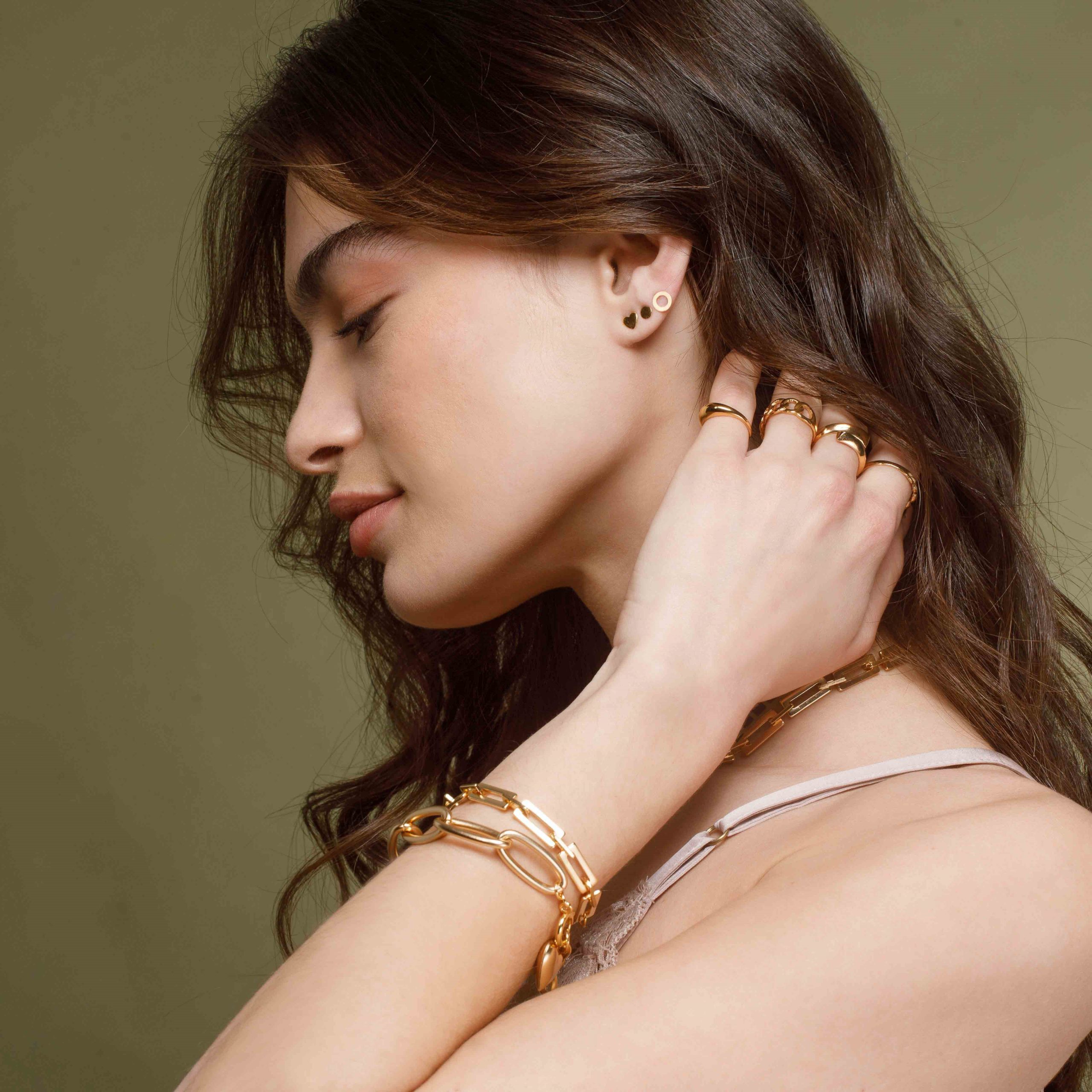 הסט מורכב משלושה עגילים עשויים מתכת בציפוי זהב 24 קראט או בציפוי כסוף בגוון מט.