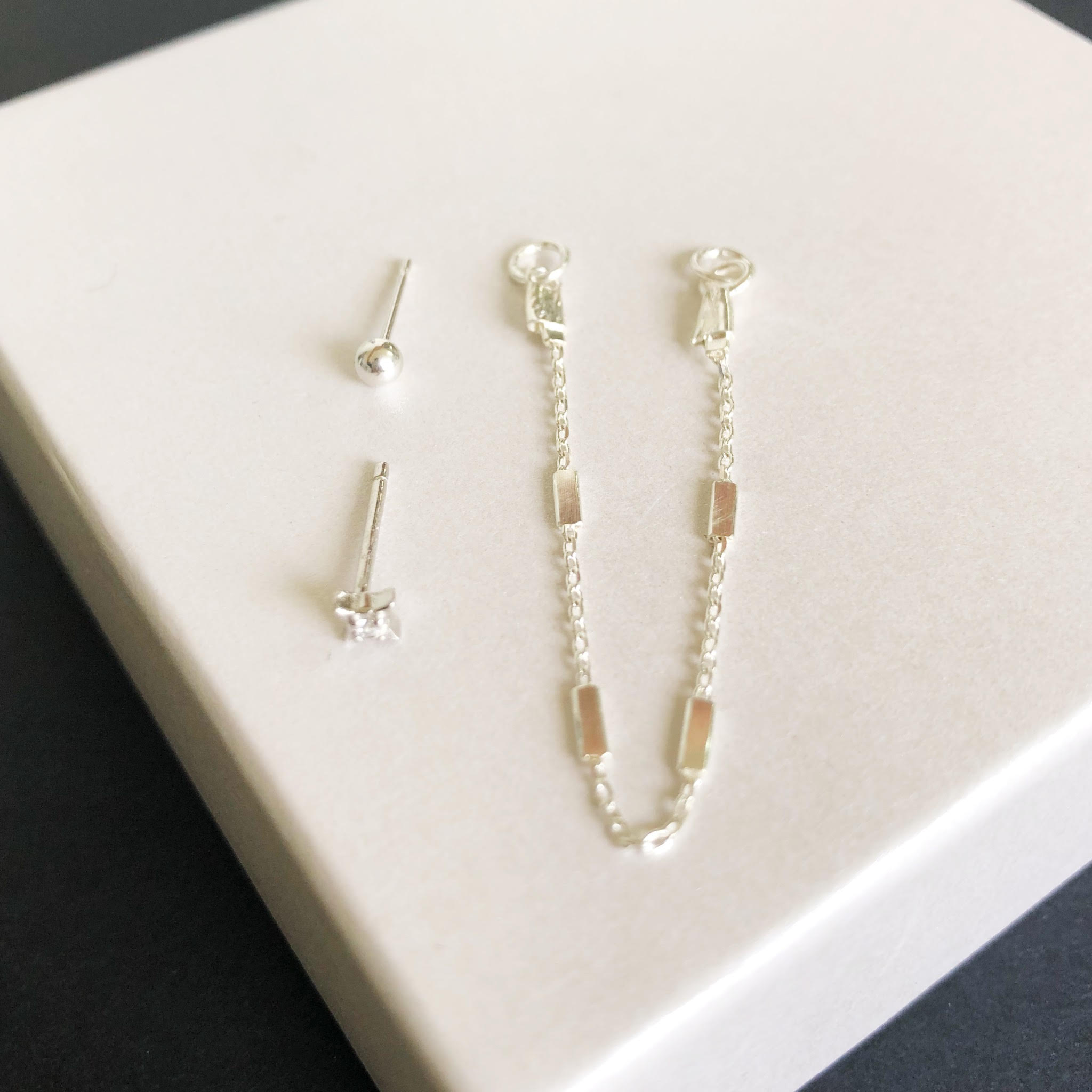 שרשרת עדינה עם שתי לולאות שניתן להכניס לשני העגילים.