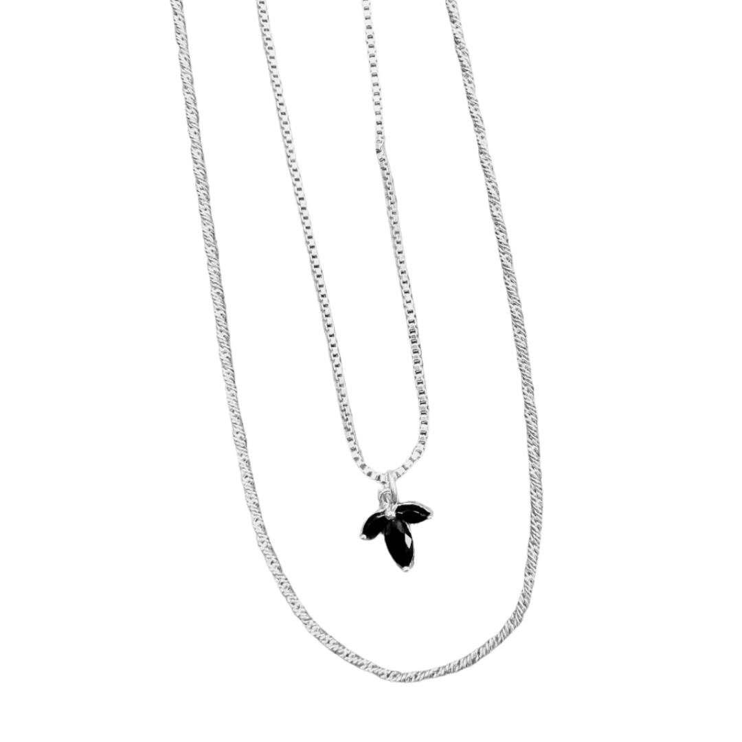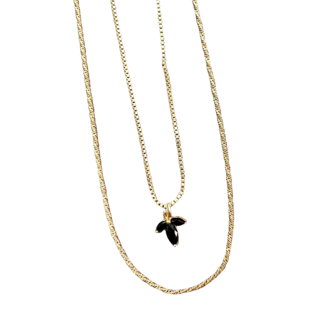 שרשרת עם תליון בצורת לוטוס עדינה בשילוב אבני קריסטל שחורות מעלפות