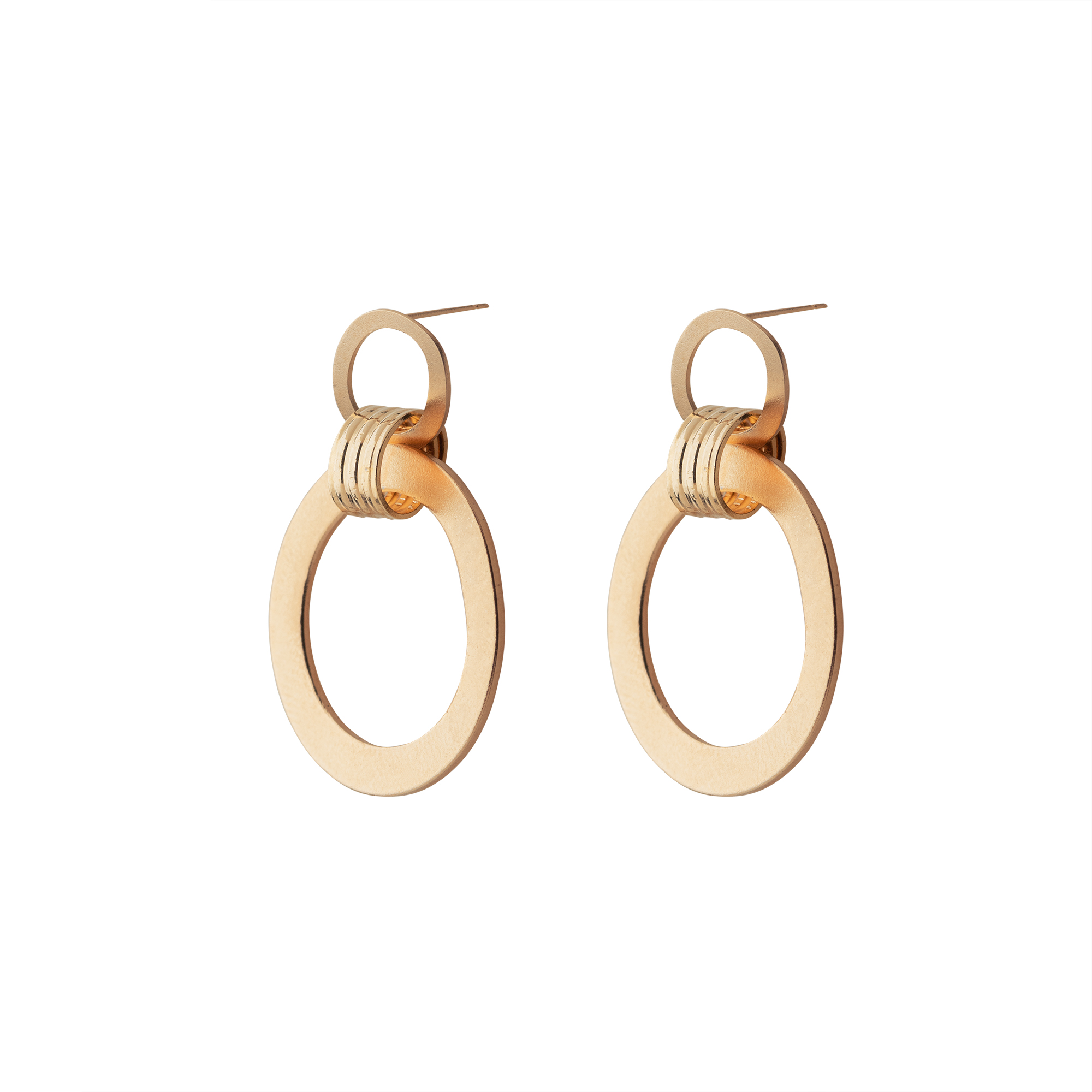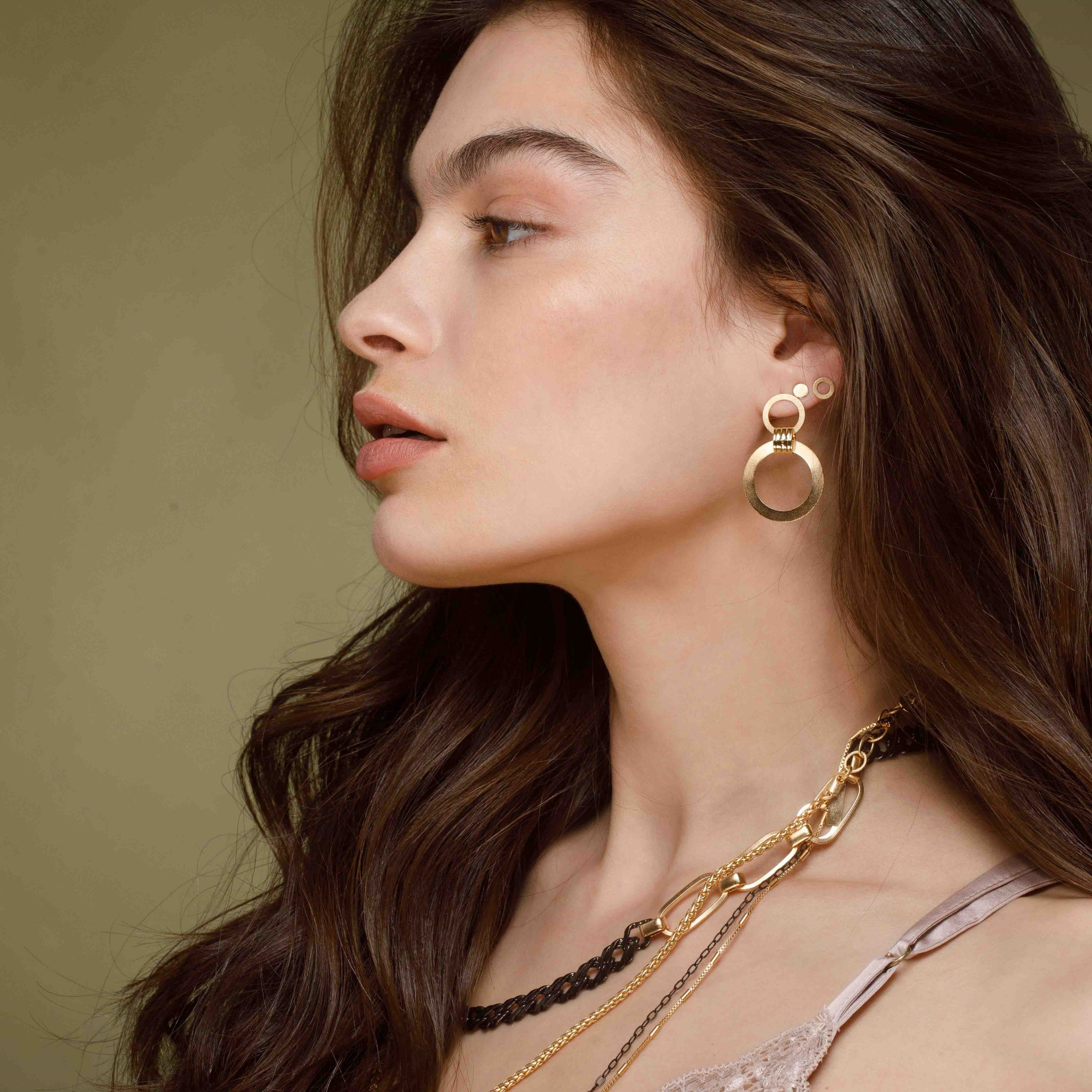 עגילים נוכחים ומרשימים עשויים מתכת בציפוי זהב 24 קראט או בציפוי כסוף בגוון מט.