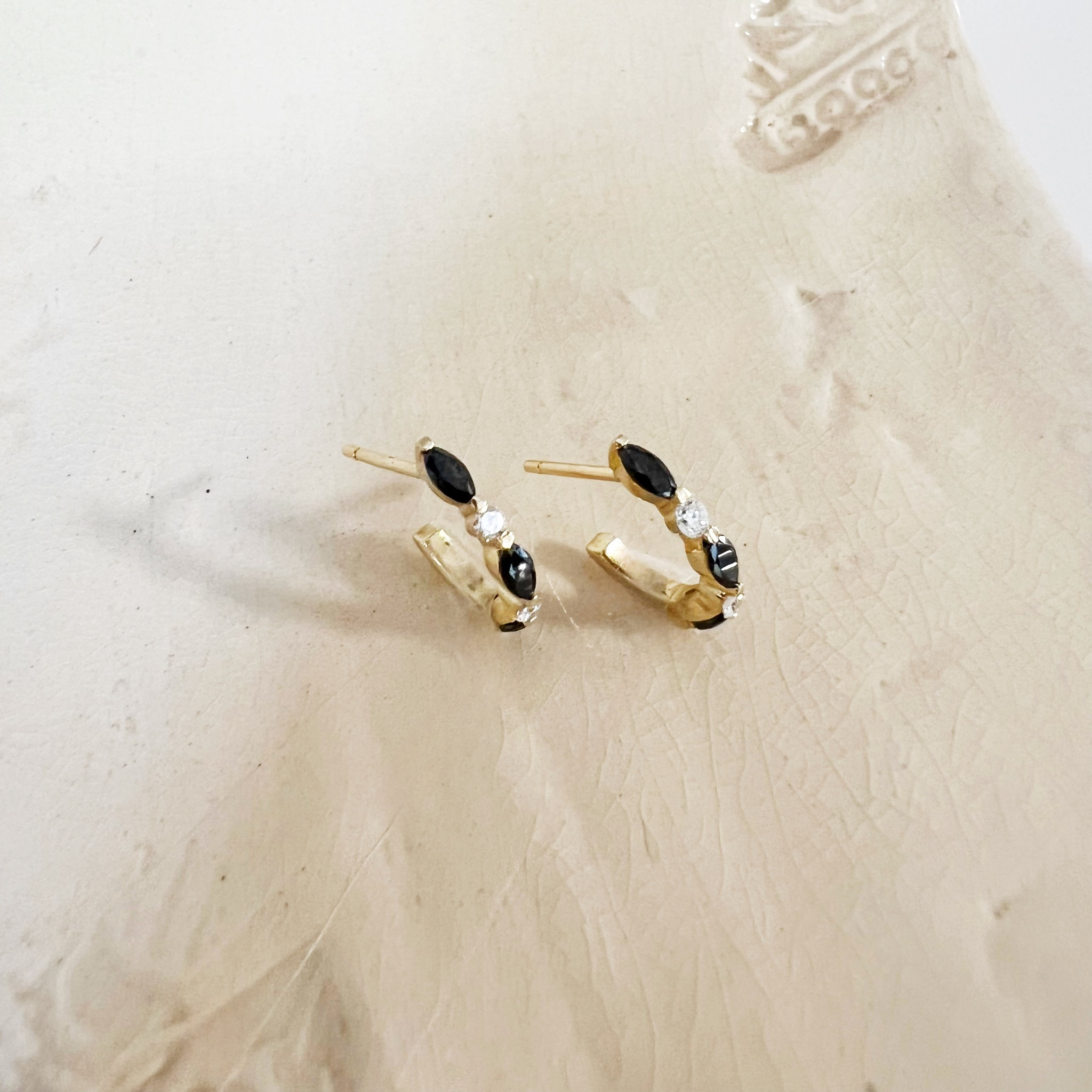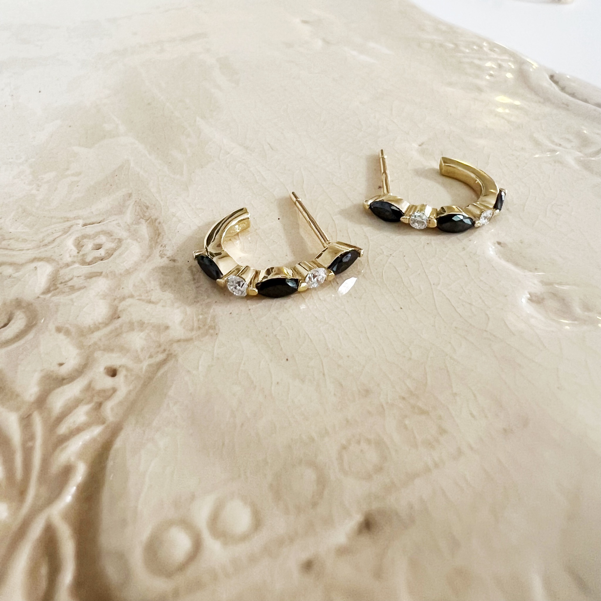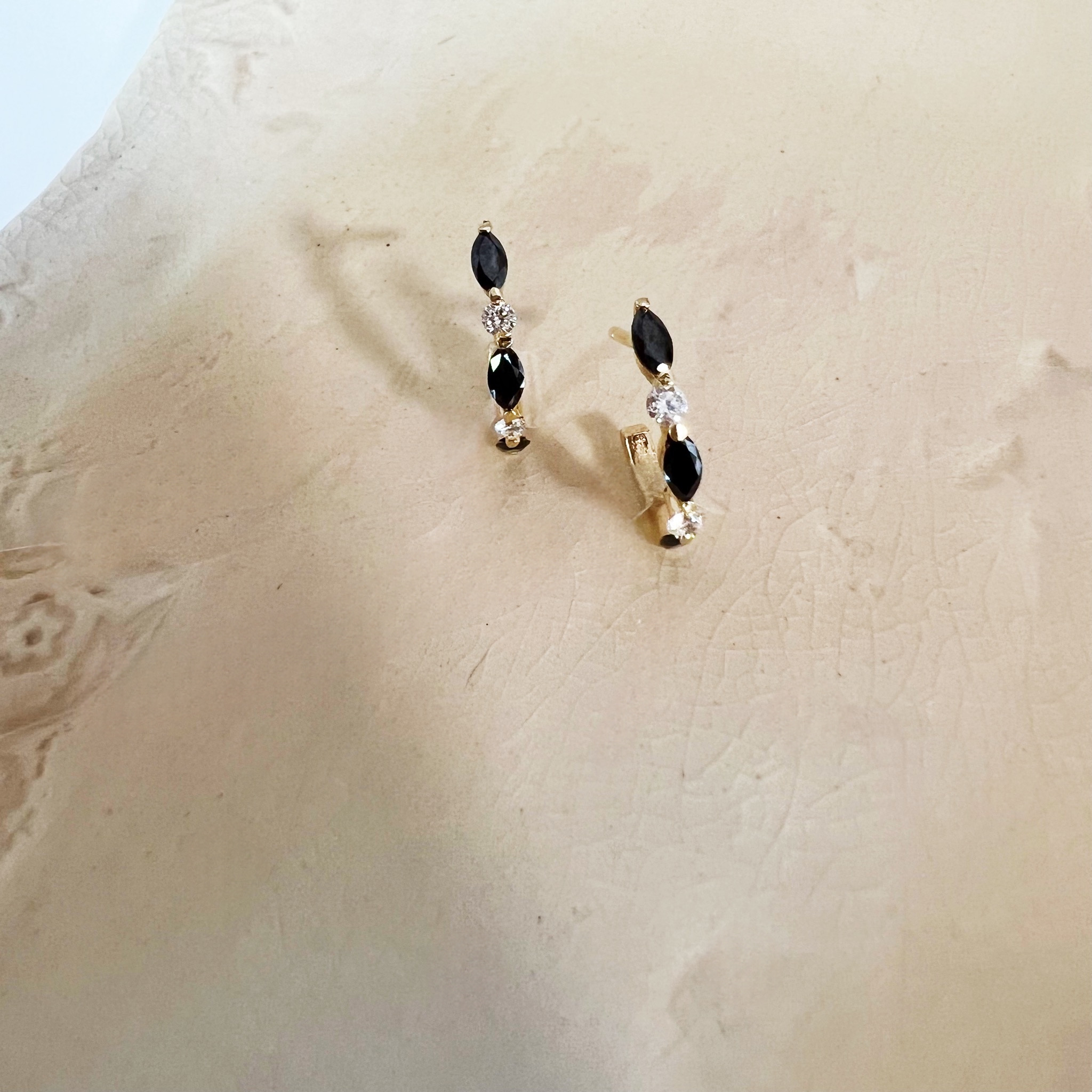 עגילי חישוק מרקיזות שחורות צהוב 14 קראט