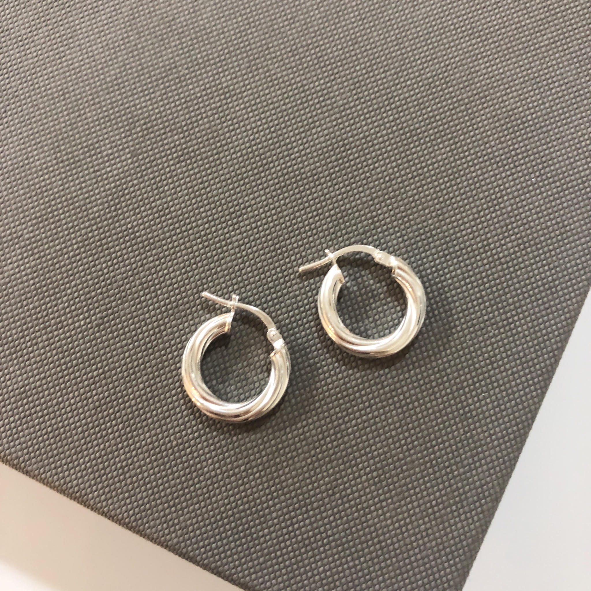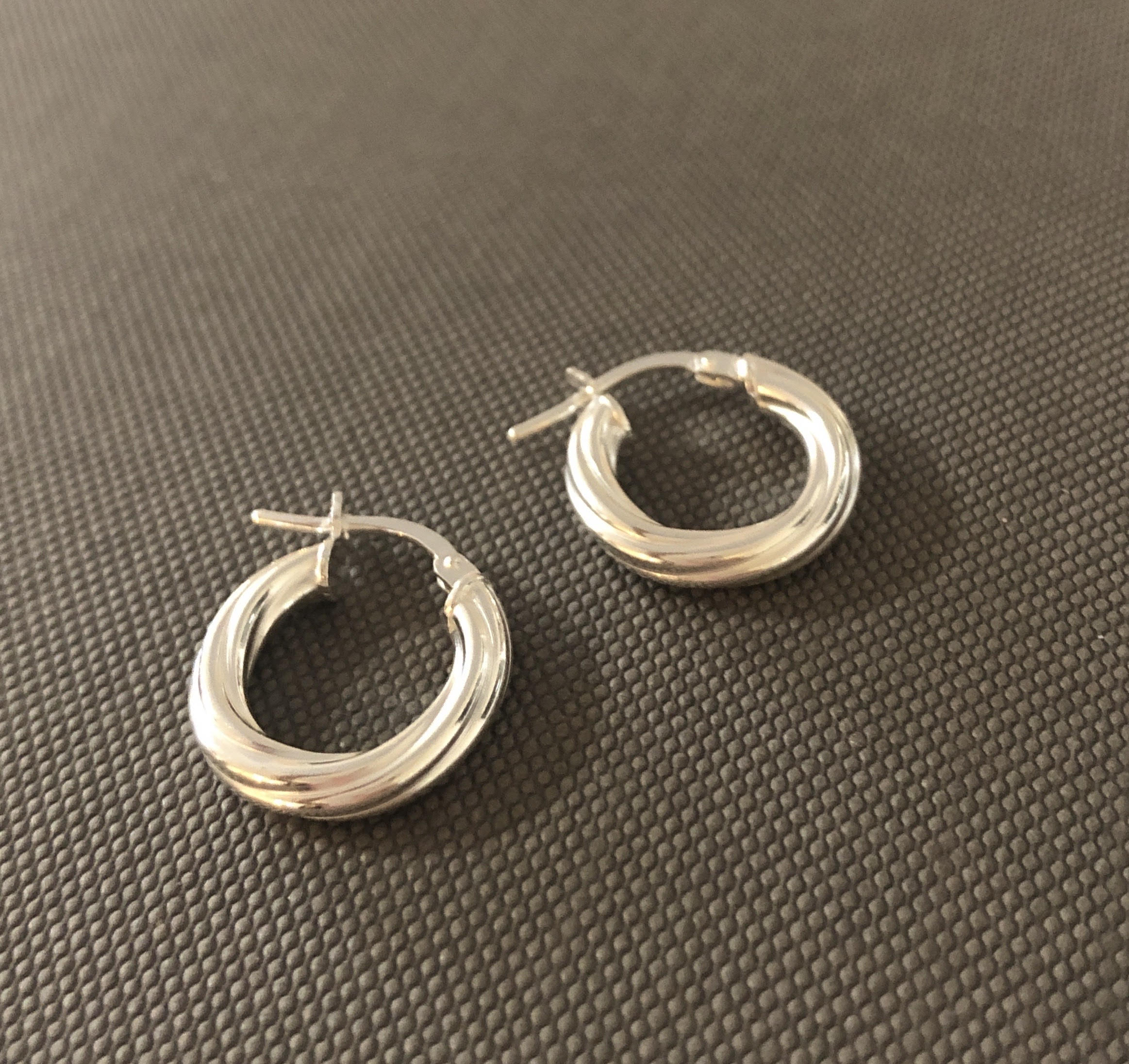 עגילי חישוק קלאסיים עשויים כסף אמיתי עם טקסטורה מיוחדת המעניקה טוויסט נוסף.