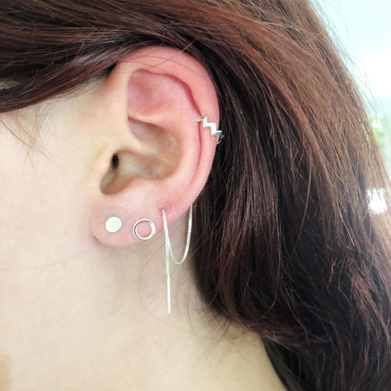 עגיל מקסים ומיוחד עשוי כסף אמיתי עשוי שרשרת שנכנסת לאוזן אליה מחור עגיל הליקס ללא חור שנצמד בקלות לחלק העליון של האוזן