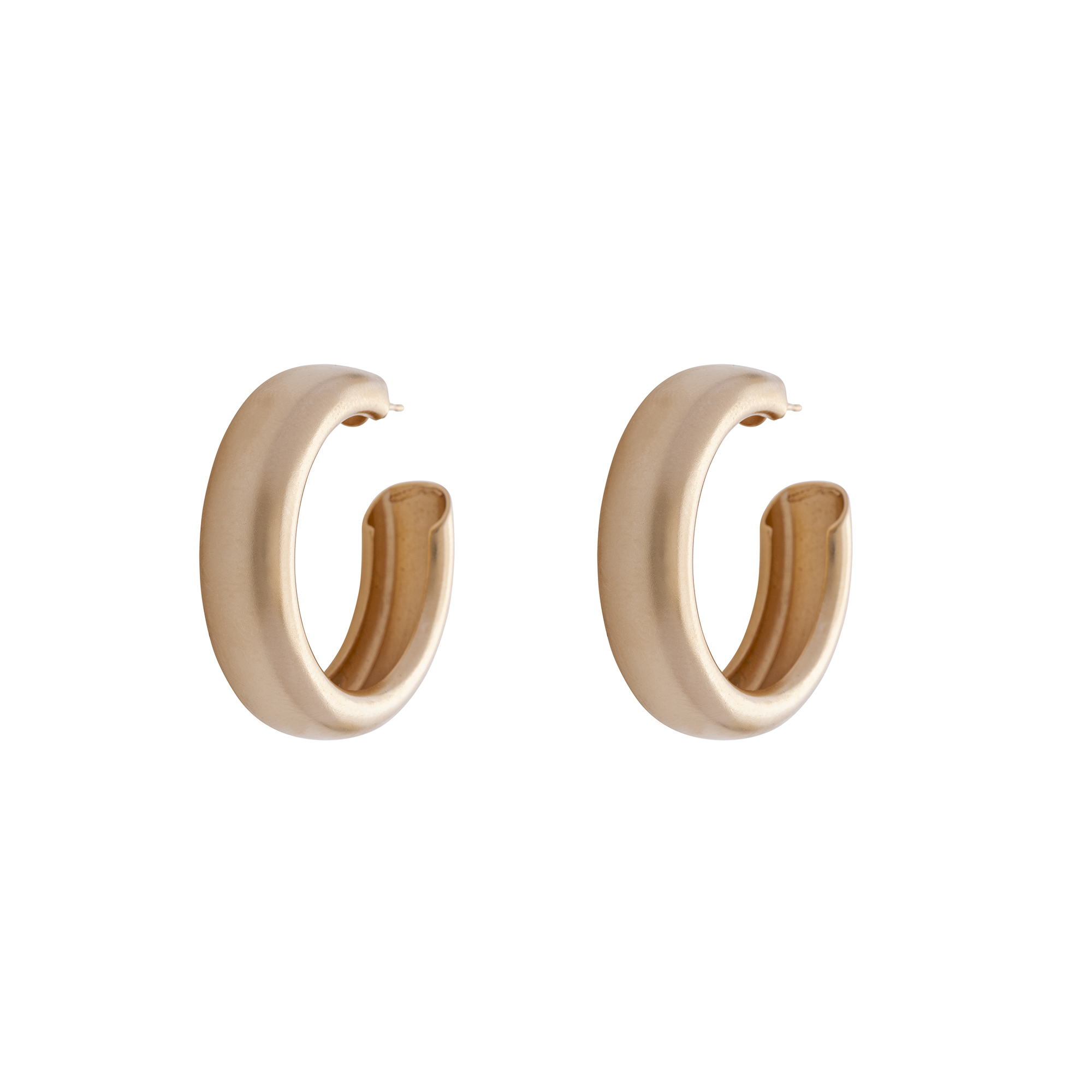 עגילים אלגנטיים מרשימים עשויים מתכת בציפוי זהב 24 קראט בגוון מט או בציפוי כסוף בגוון מט.