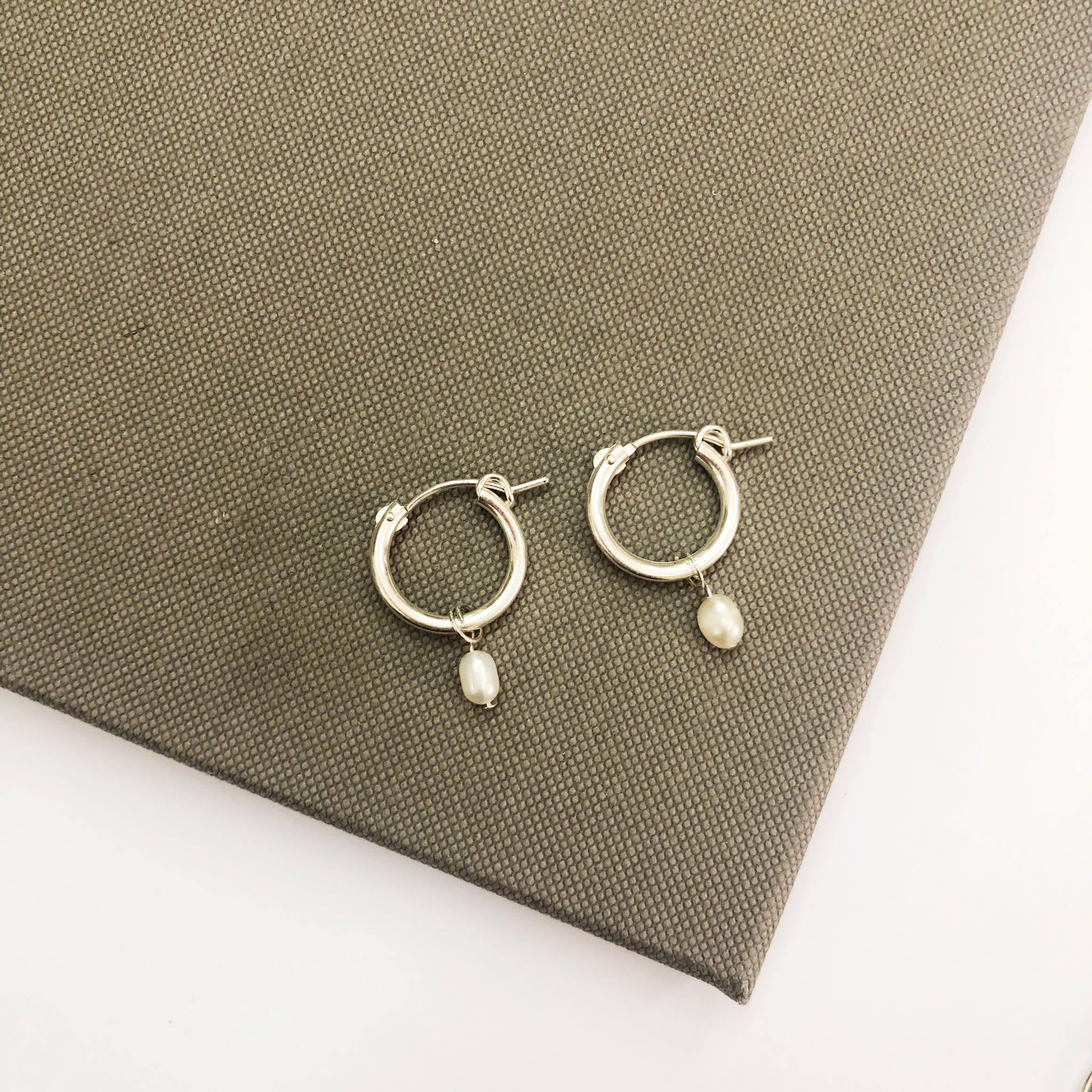 זוג עגילי חישוק בקוטר 13 מ”מ מכסף אמיתי עליהם תלויה פנינה אמיתית מקסימה.