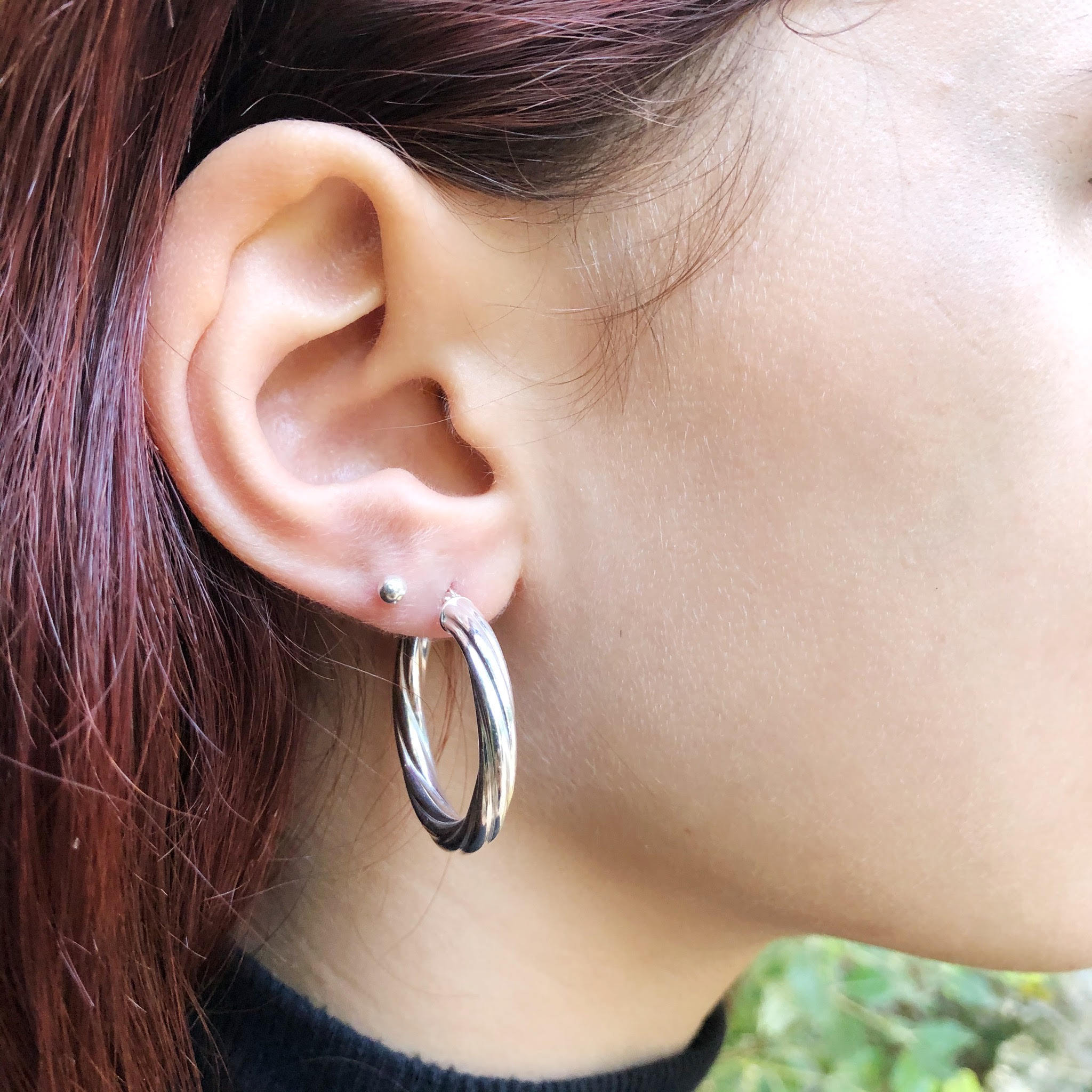 עגילי חישוק ספירלה בינוני כסף אמיתי