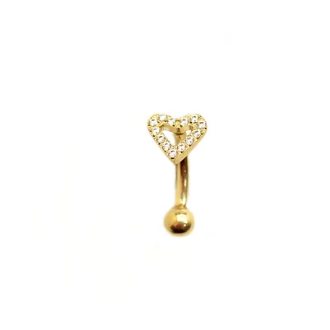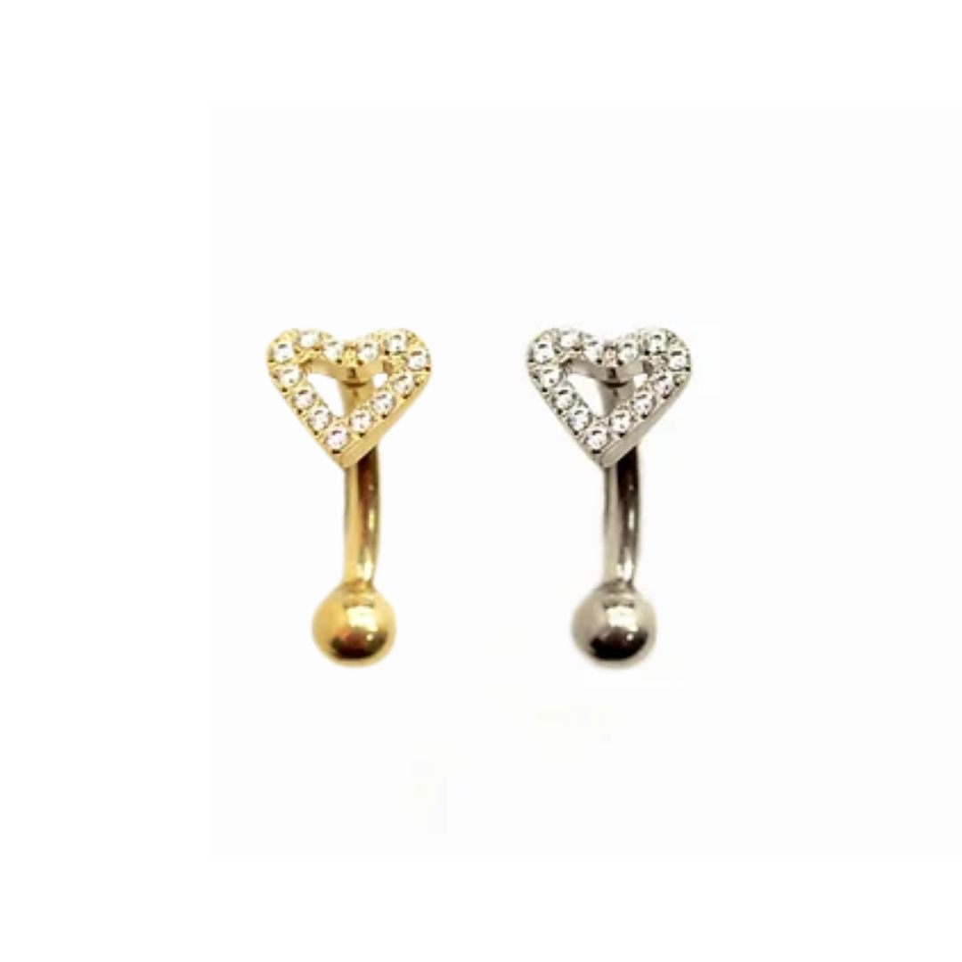 עגיל פירסינג מקסים עשוי טיטניום – היפואלרגני, עמיד ואיכותי בעיצוב לב קטן משובץ קריסטלים מנצנצים.