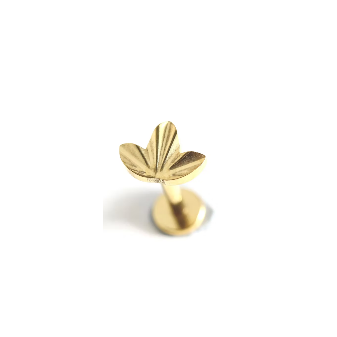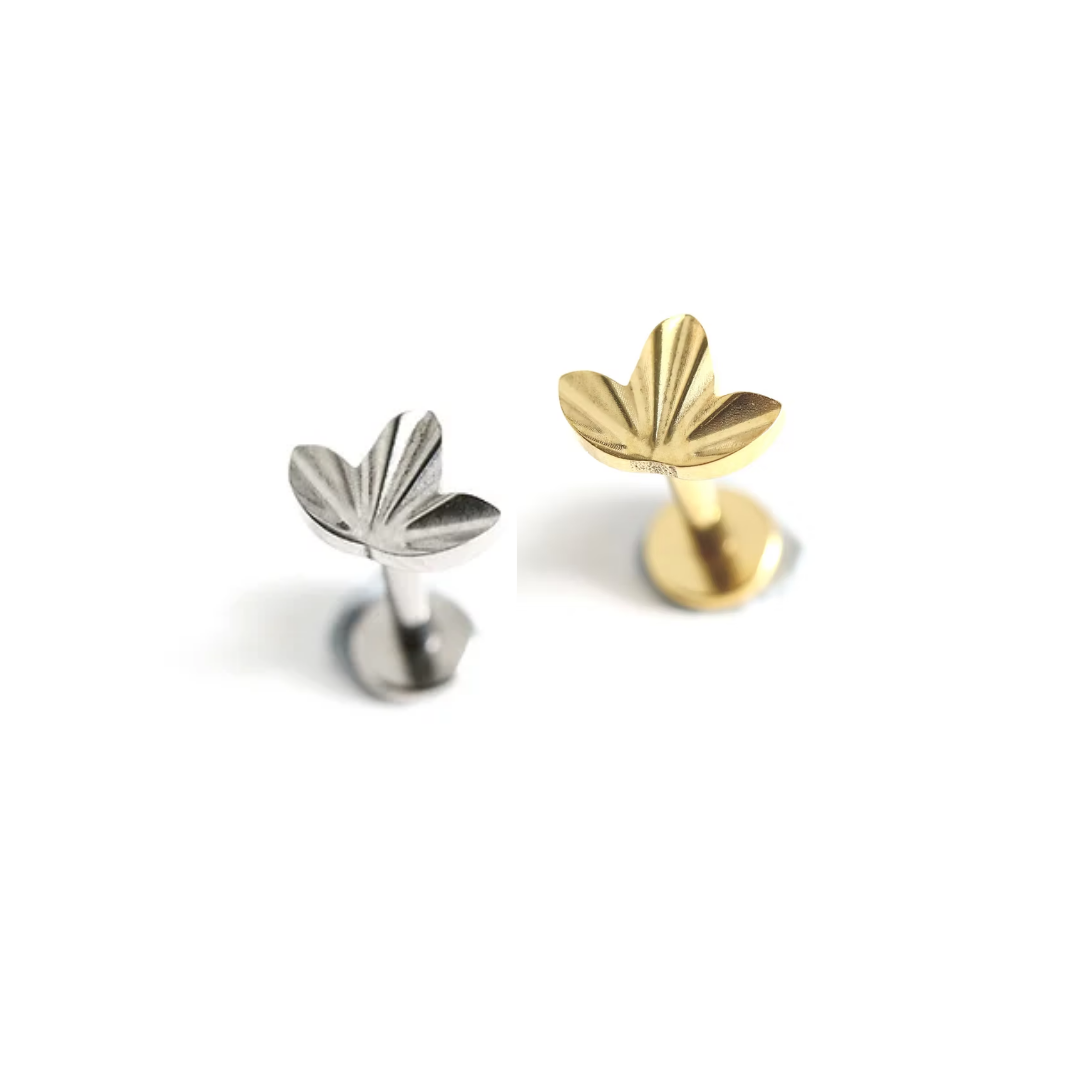 עגיל פירסינג עדין עשוי טיטניום – היפואלרגני, עמיד ואיכותי בעיצוב עלה קטן ויפהפה.