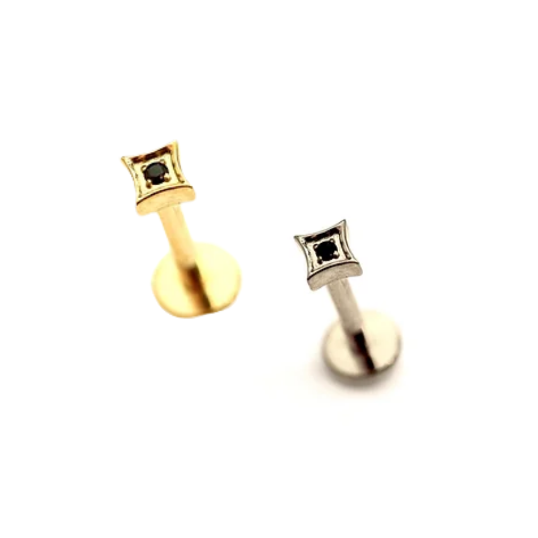 עגיל פירסינג קטנטן עשוי טיטניום – היפואלרגני, עמיד ואיכותי משובץ אבן קריסטל שחורה.