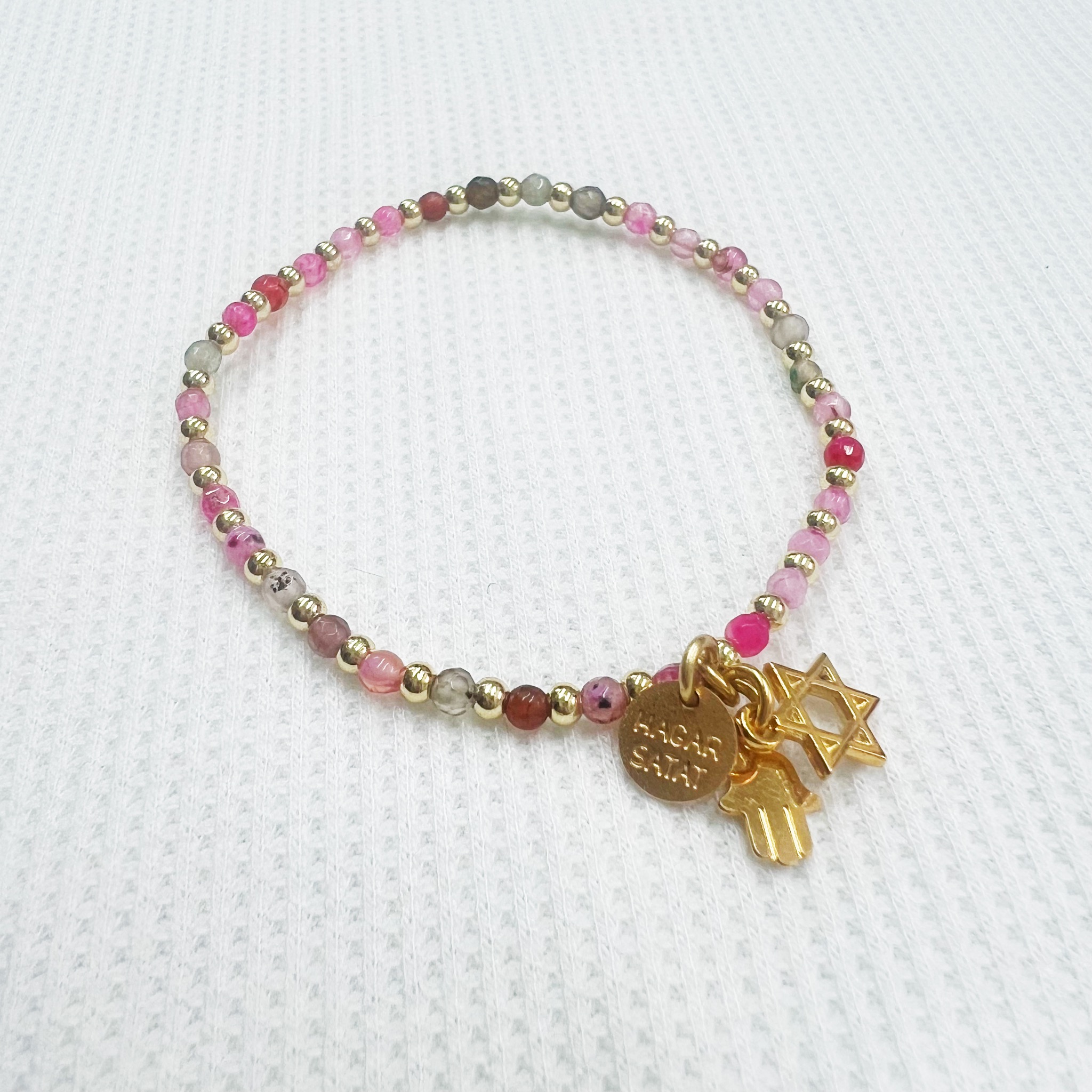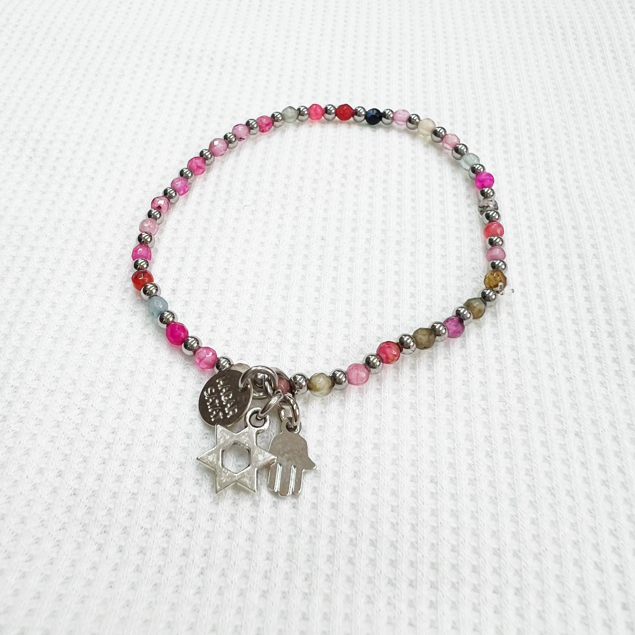 הצמיד עשוי אבני חן אמתיות משולבות עם תליוני צ’ארמס מקסימים מלאים באהבה, תקווה ומזל.