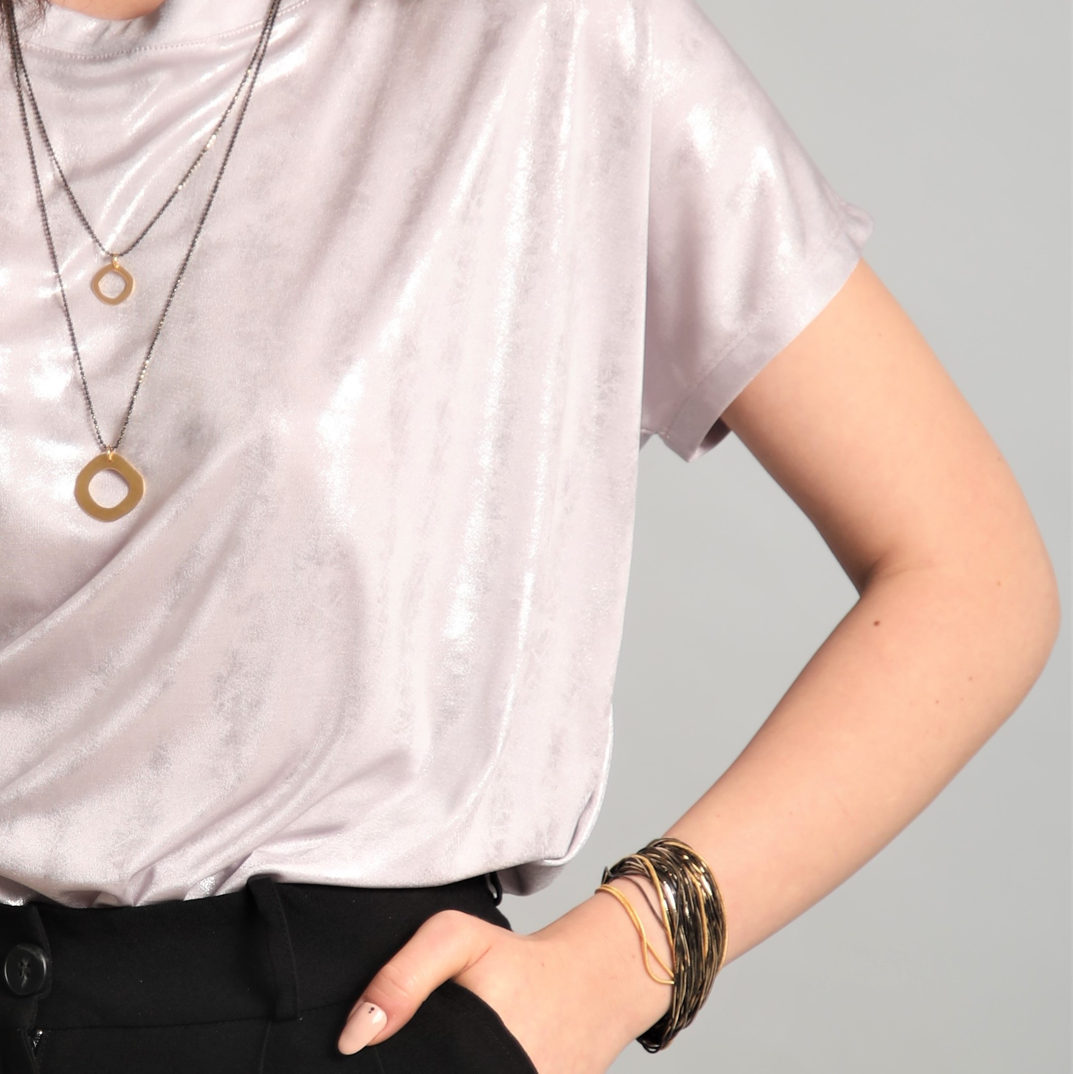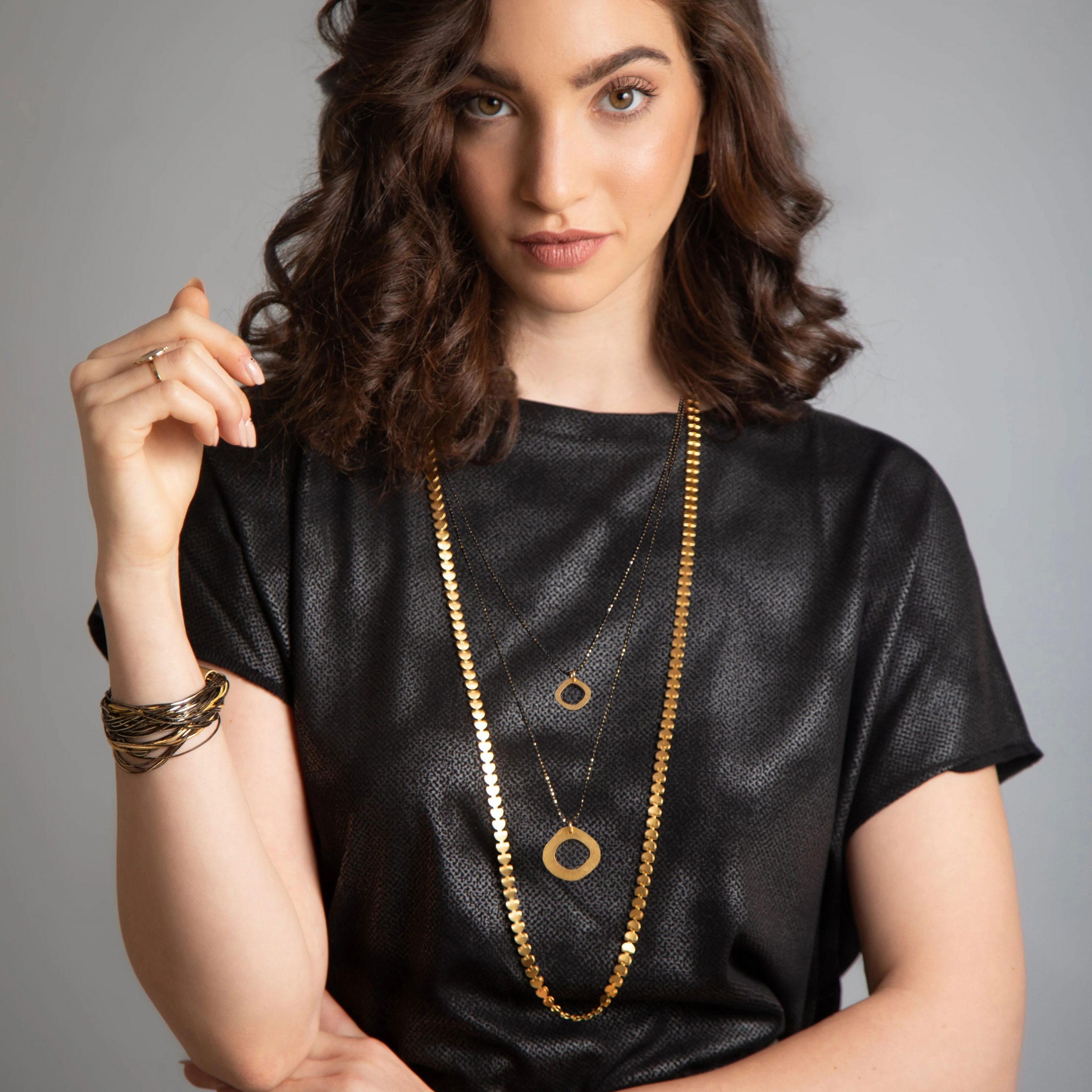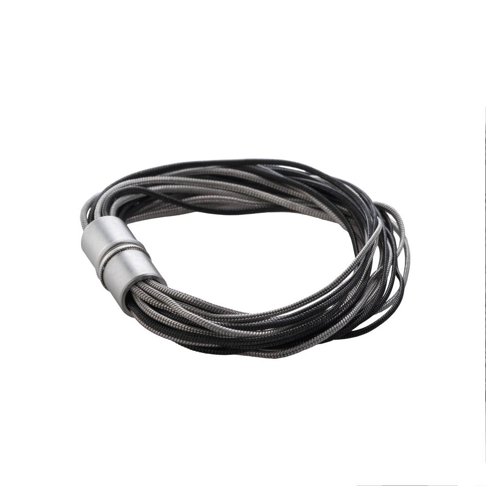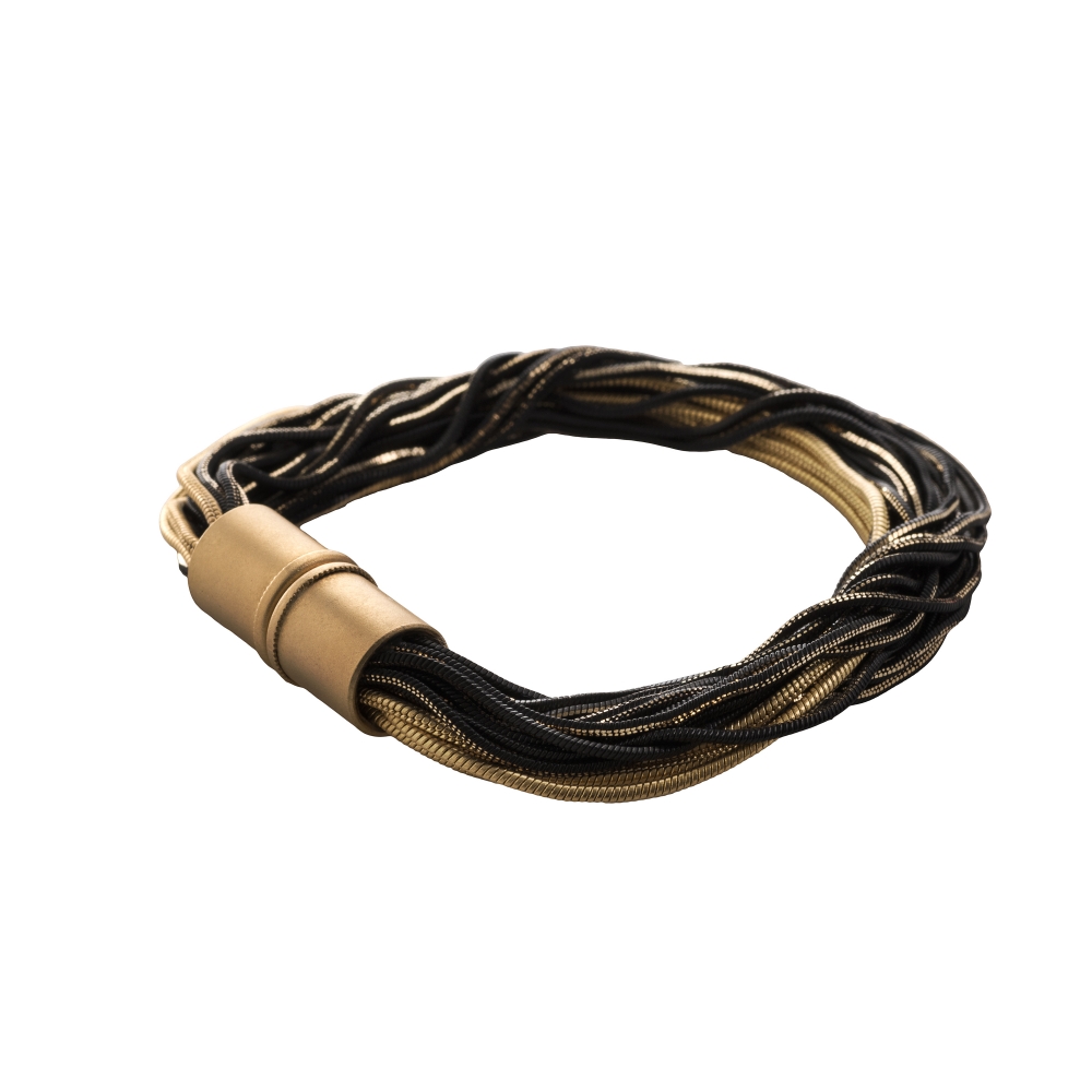 שרשראות עדינות בציפוי זהב 24 קראט או בציפוי כסוף, בשילוב עם שרשראות שחורות המתחברות לסוגר מגנט מצופה גם הוא.