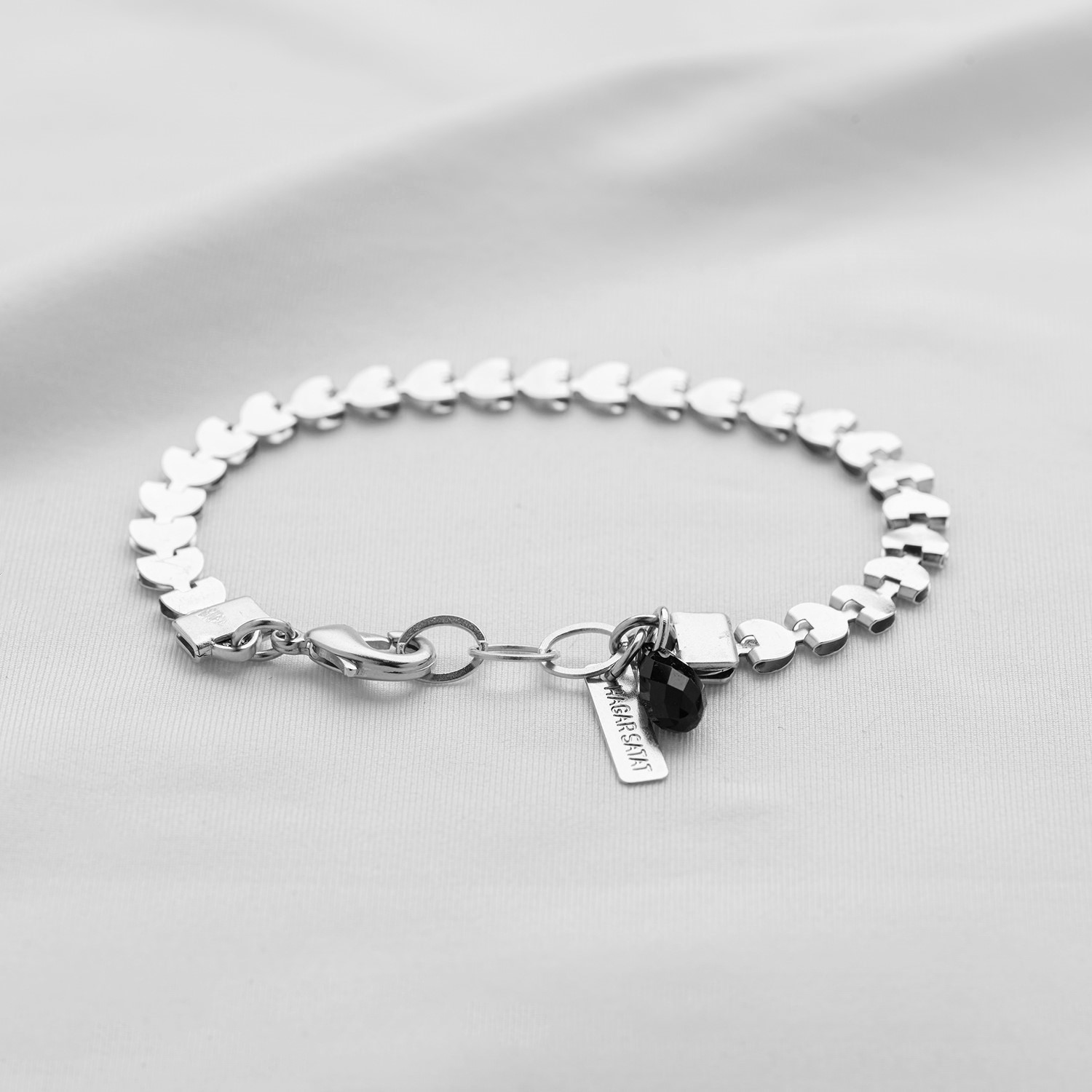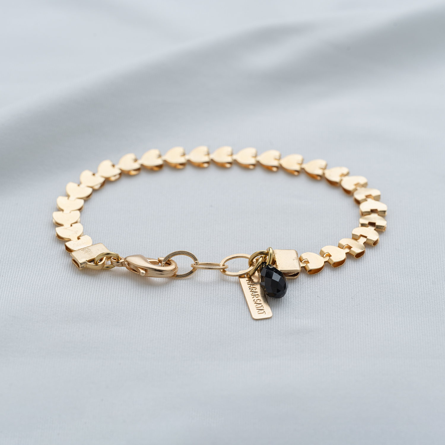 חוליות בצורת לבבות מופשטים מחוברות אחת לשניה, ויוצרות צמיד מקסים וקלאסי.