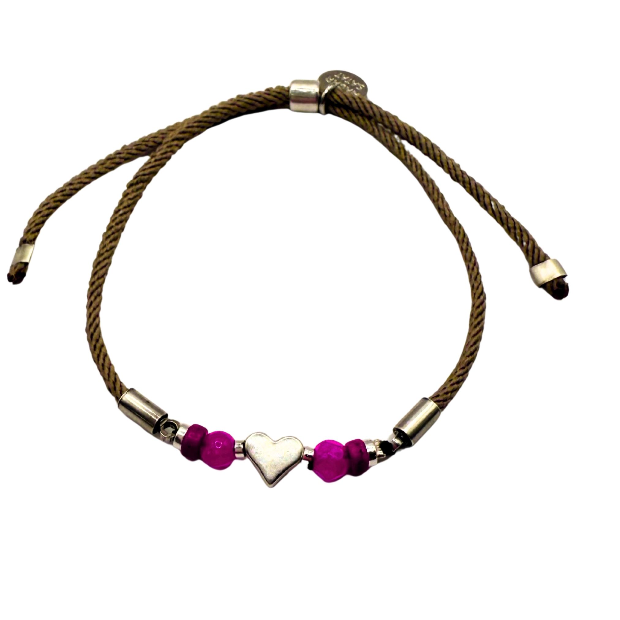 הצמיד עשוי חבל עם חרוזי אבן וחרוז לב במרכזו – טאץ’ מתוק שמשדרג כל לוק.