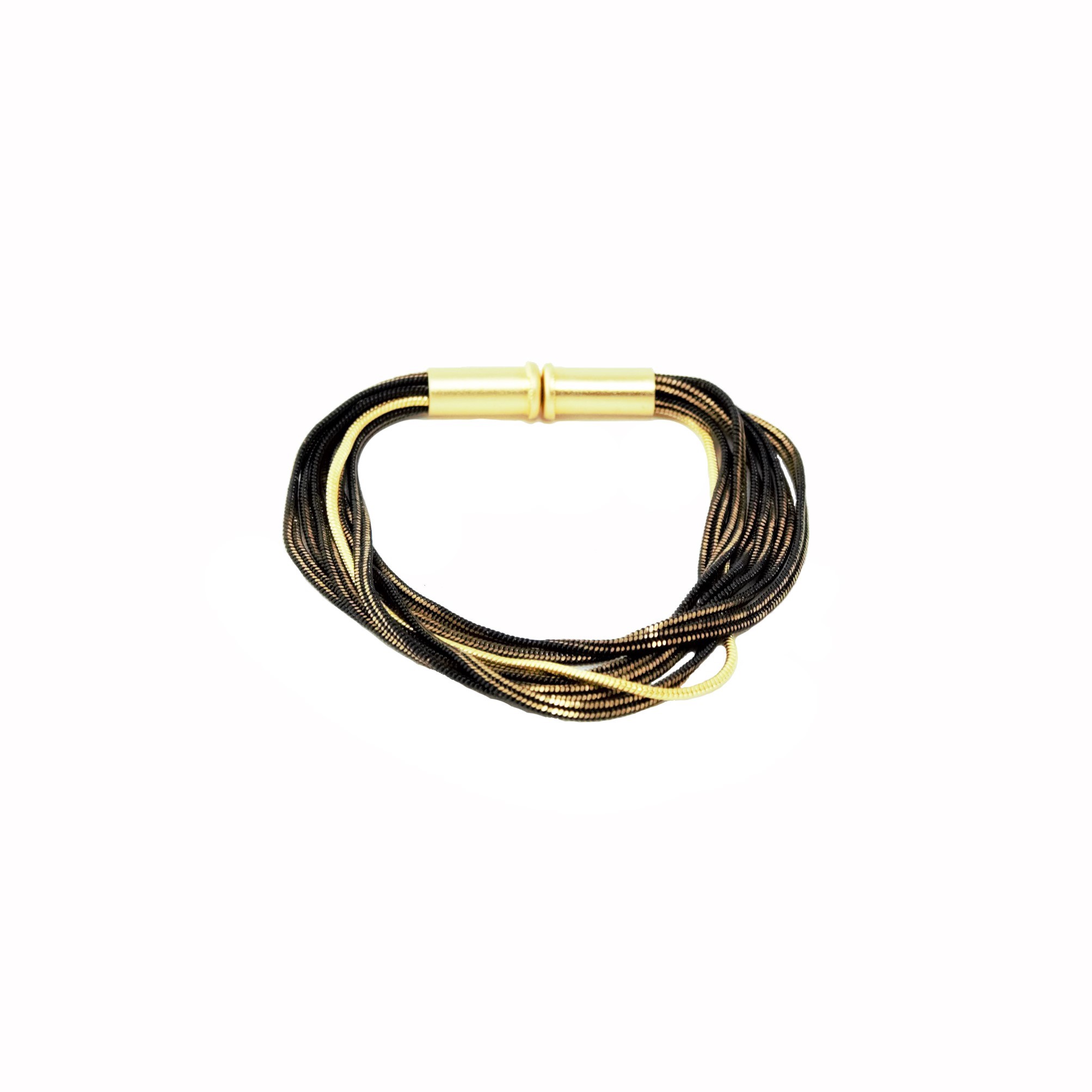 שרשרת עדינה בציפוי זהב 24 קראט משולבת עם שרשראות בצבע אפור או שחור עם נגיעות זהב ,