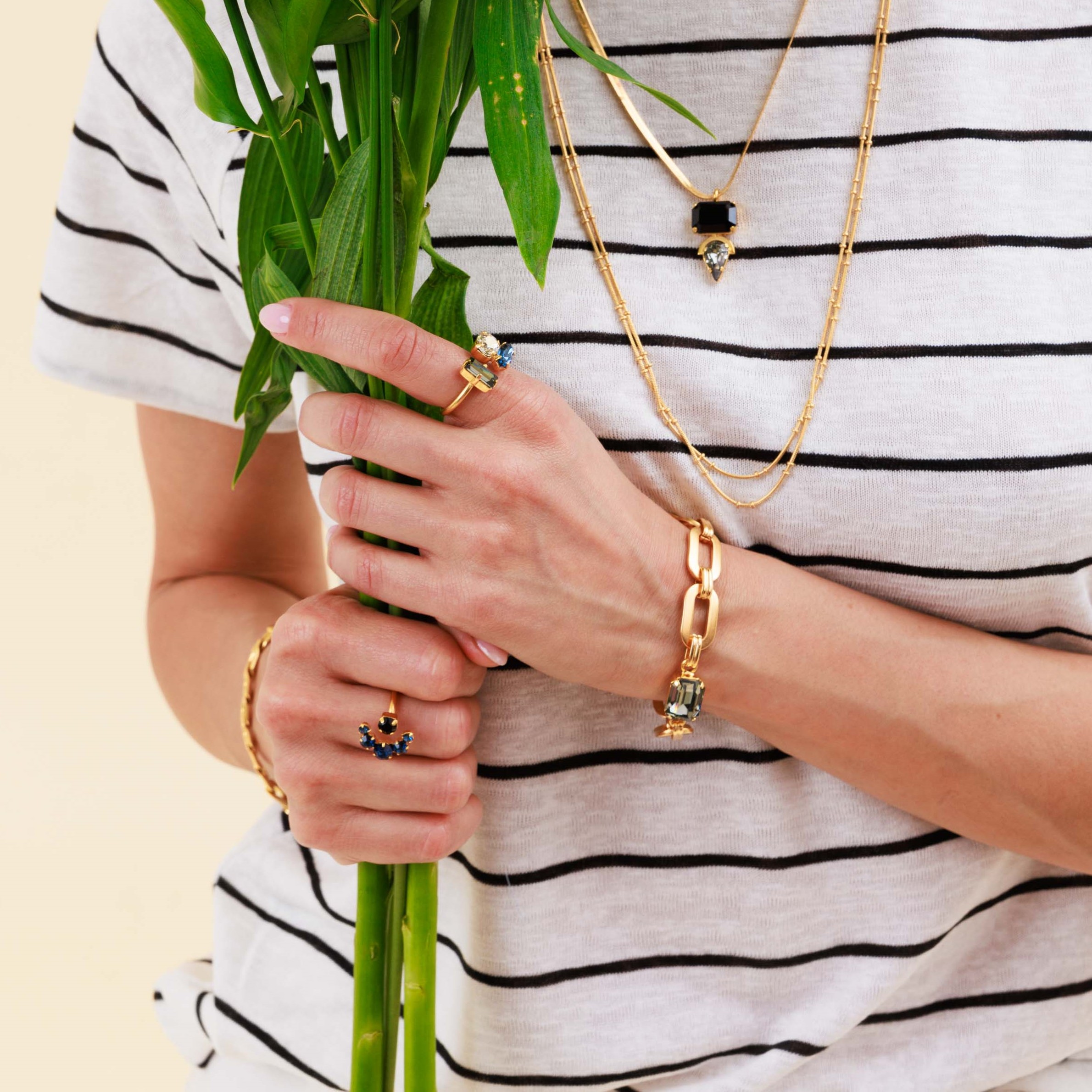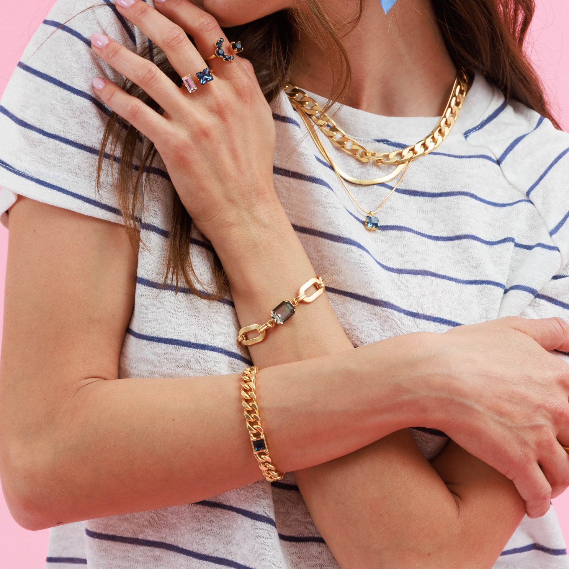 | צמיד משגע מקולקציית “עלות השחר”. צמיד גורמט מהמם בציפוי זהב 24 קראט או בציפוי כסוף בגוון מט משובץ אבן סברובסקי כחולה מרהיבה. אורך הצמיד כ17.5 ס”מ ועוד 2 ס”מ הארכה. קלאסי ונוכח משתלב מצויין עם צמידים נוספים, מגיע באריזה מהודרת. |