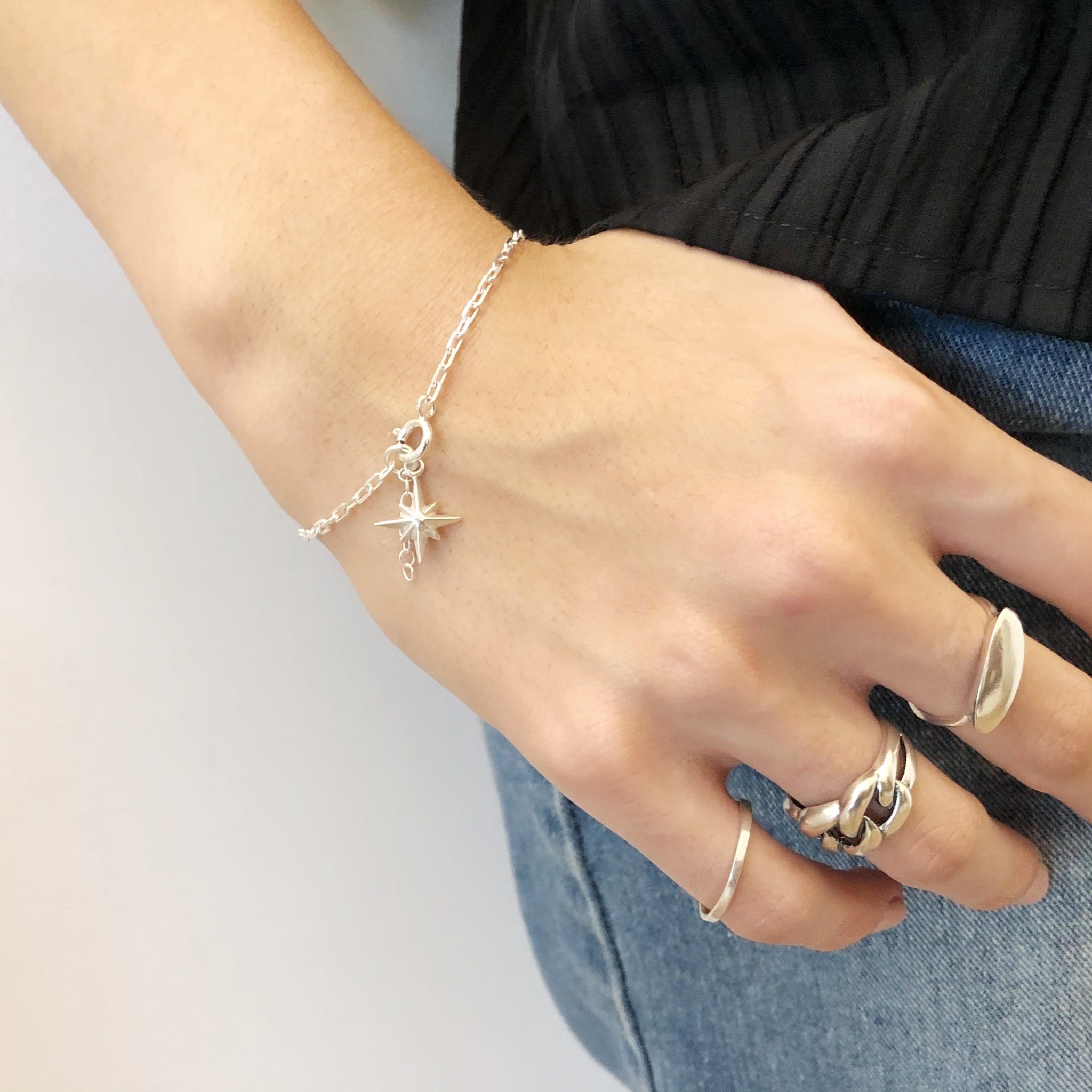 הצמיד עשוי שרשרת עדינה מכסף אמיתי משולבת עם תליון כוכב מקסים.