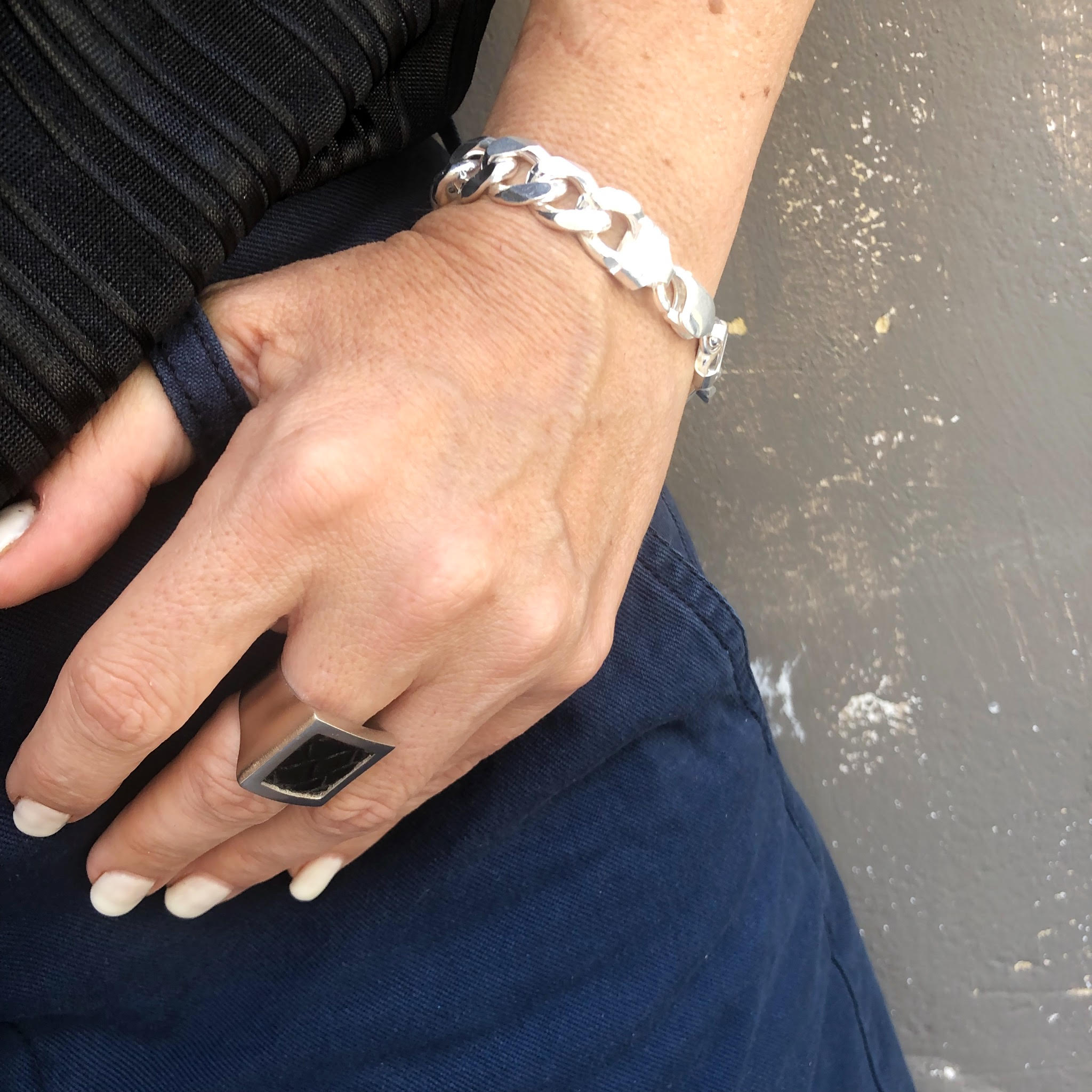 הצמיד עשוי שרשרת גורמט עבה מכסף אמיתי מרשימה עם חיתוך מיוחד.
