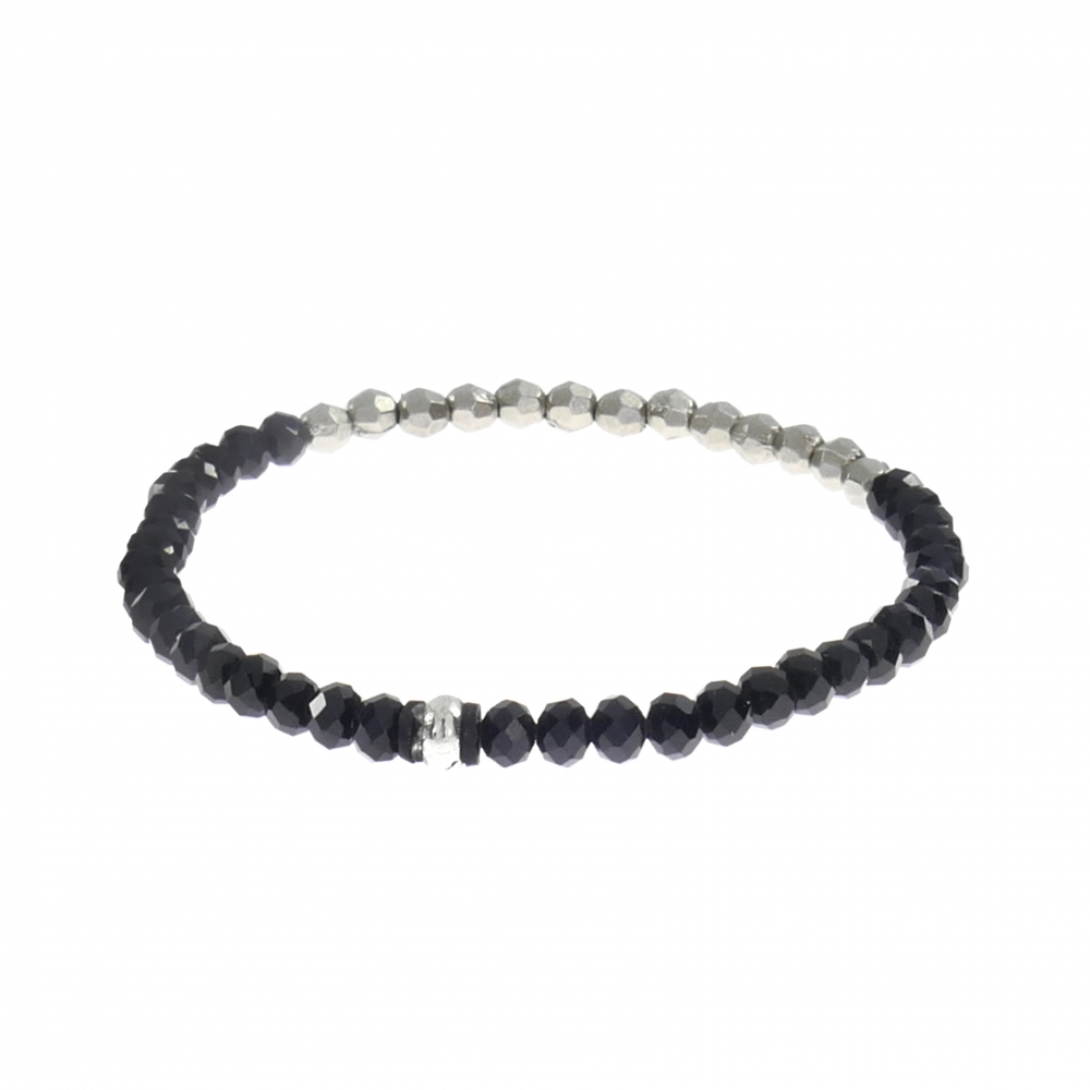 חרוזי קריסטל איכותיים משולבים עם חרוזי מתכת מנצנצים מצופים כסף בגוון מט,