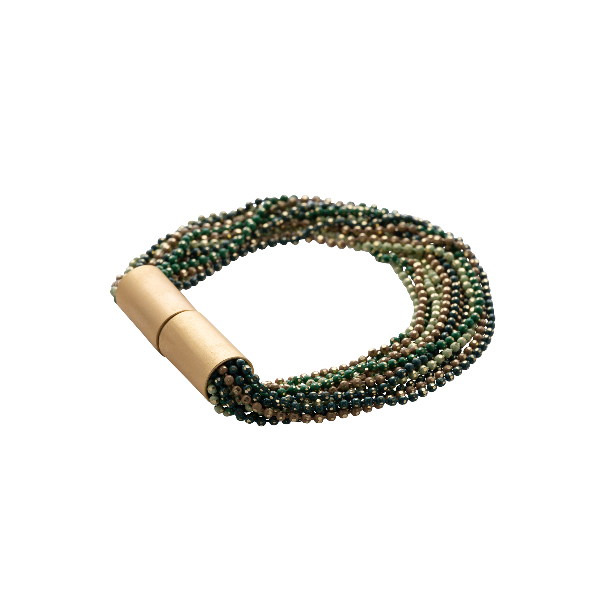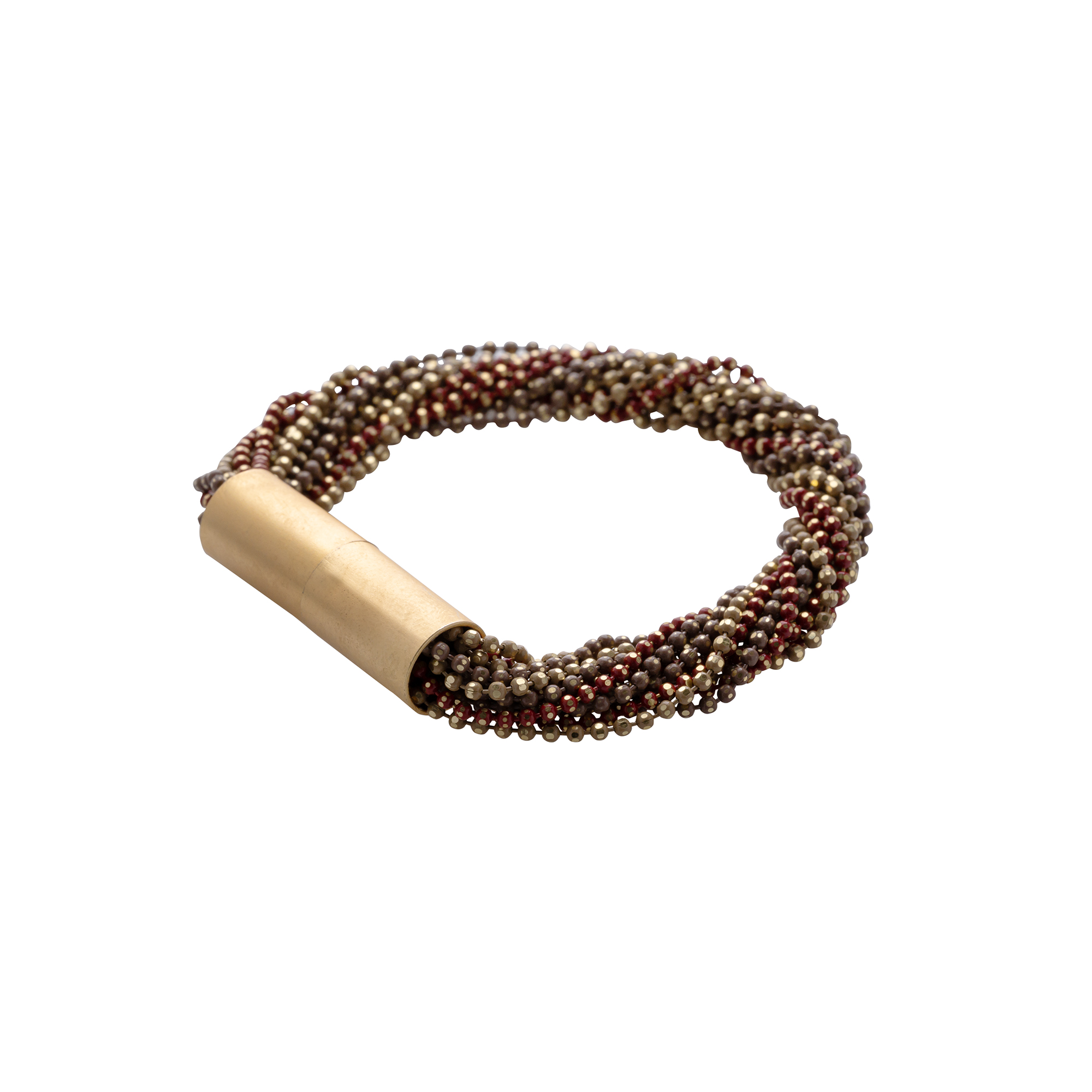 הצמיד עשוי שרשראות דיסקית עדינות במגוון ציפויים ( לבחירה בשילוב עם גוונים של אדום , שחור או ירוק.