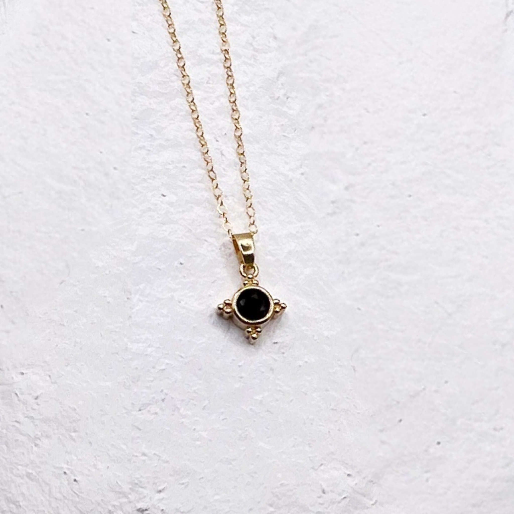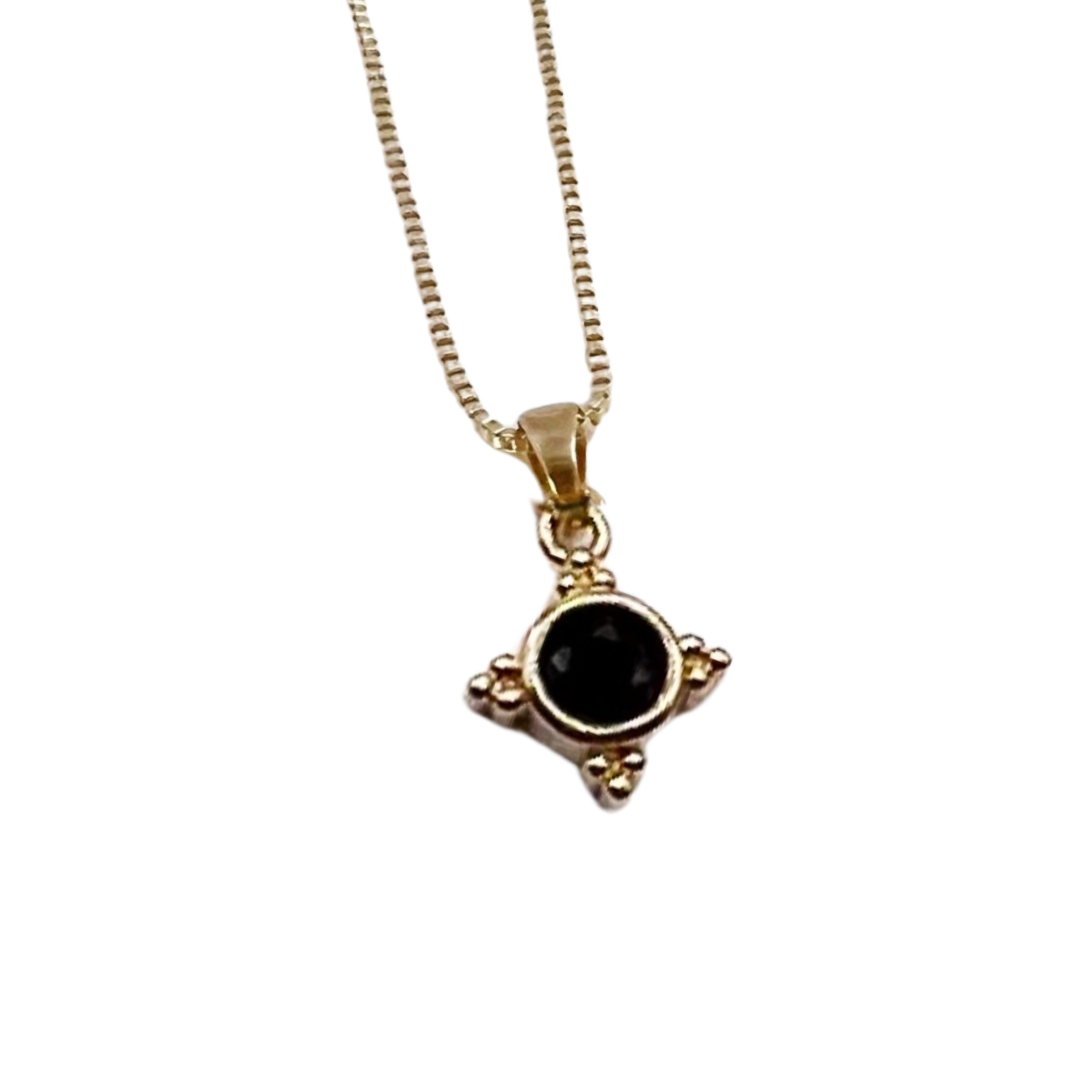 עשויה שרשרת בוקס עדינה עם תליון מרהיב משובץ אבן קריסטל שחורה מהממת בציפוי זהב 24 קראט עמיד ואיכותי.